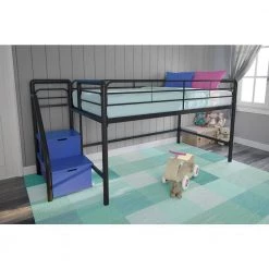 Andy Junior Twin Black/Blue Loft bed with Storage Steps by DHP