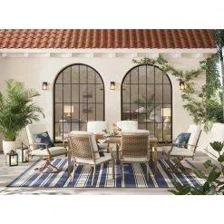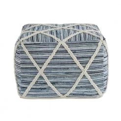 Blue Cross Woven Square Floor Pouf Ottoman (20 in.) by Home Decorators Collection