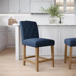 Lydie Parsons 24.5 in. H Navy Blue Linen Upholstered Counter Stool with Light Oak Legs by DHP
