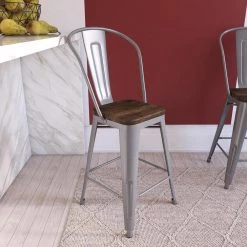 Mavery Patina Oak Finish Cross Back Bar Stool with Woven Rattan Seat by Home Decorators Collection