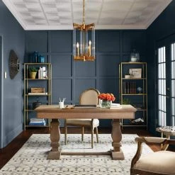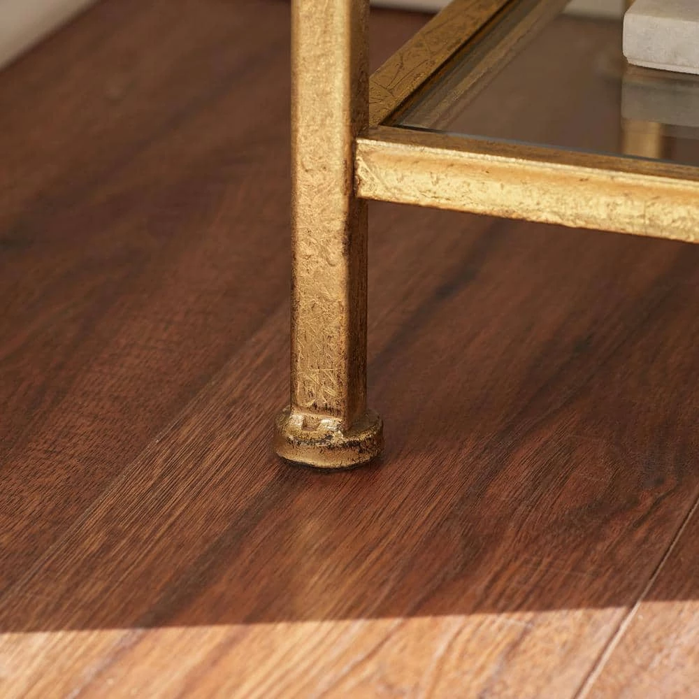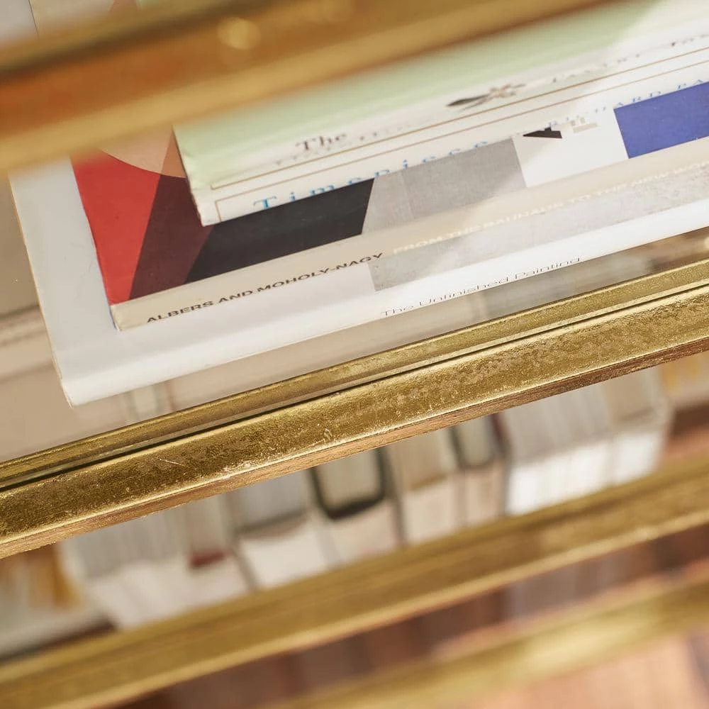 This Home Decorators Collection Bella bookcase gives your home a classic touch. This versatile bookcase features four shelves to organize your belongings and the design is perfect for living spaces or offices. It’s also stylish with a gold leaf finish and tempered glass shelves.