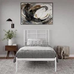 - Ships in one box and assembles easily available in twin, full, queen and king size offered in black and white