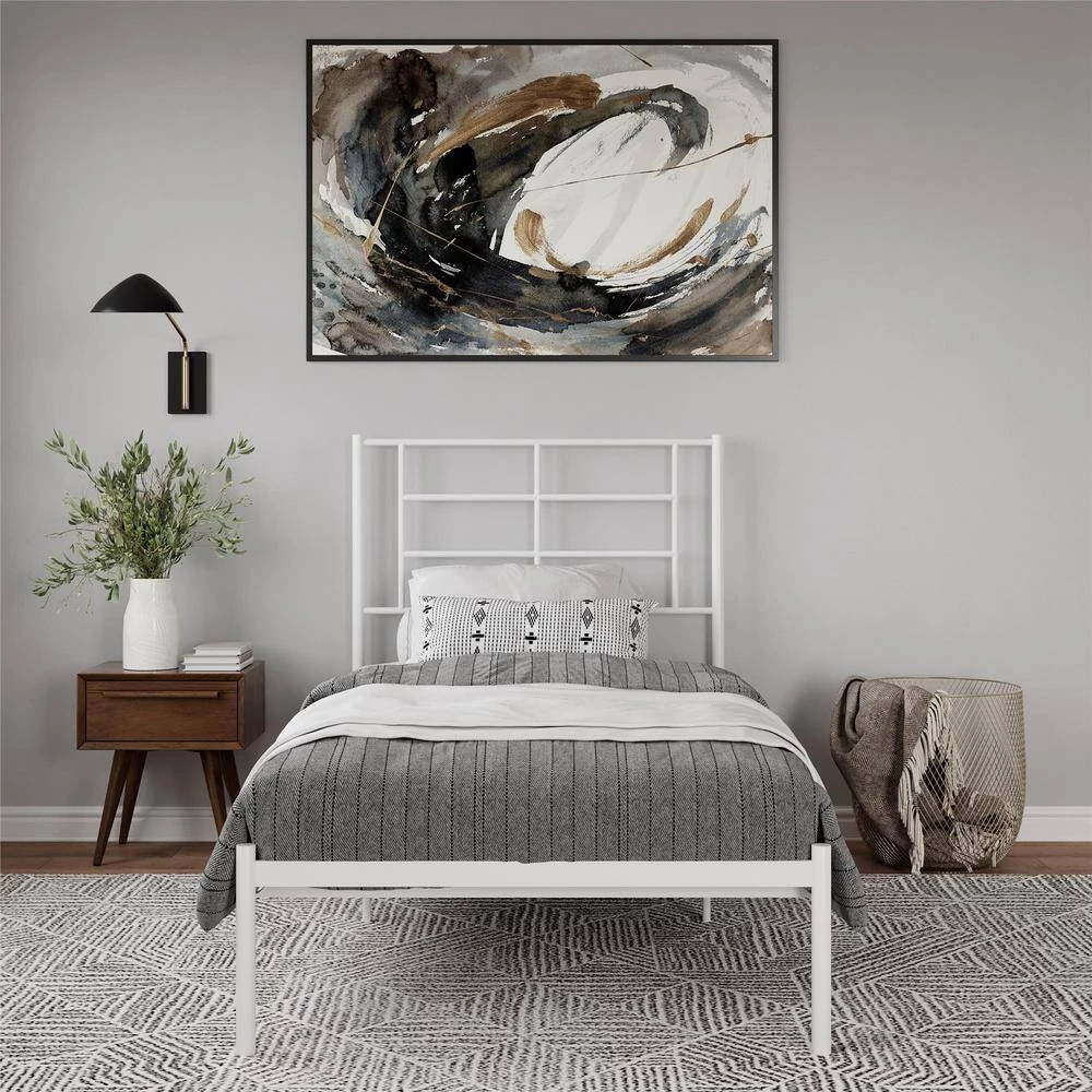 You can close all your internet search tabs because you’ve just found the perfect bed: the DHP Akari Metal Bed. Perfect for bedrooms of any style, the Akari is the simple statement piece you need to complete your room decor. The Akari is designed with a rectangular headboard with geometric detailing that will help add a touch of modern industrial style to your bedroom for years to come. How. This bed frame is built with a sturdy all metal construction that includes side rails, center legs and secured slats. These slats remove the need for you to purchase any additional box spring or foundation. What’s more, the Akari has an 11 in. under bed clearance to provide additional storage space. if needed. Offered in many colors and sizes, the DHP Akari Metal Bed is just the right combination of function and style.