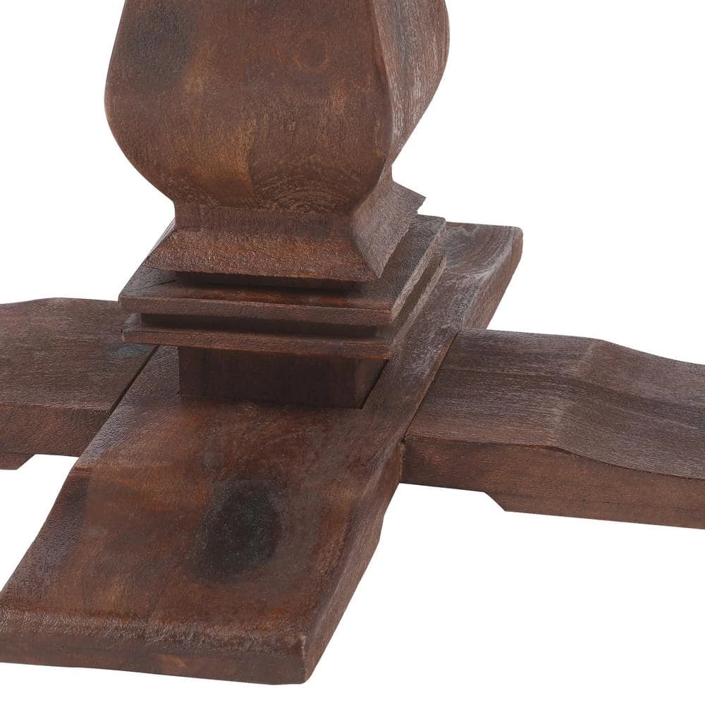 Remodel any room with the Home Decorators Collection Aldridge End Table. This end table features a rustic style, which adds a character-filled piece to your room that will enhance the warm tone of your interior design. With a wooden construction, it will give your living space aesthetic allure by including a touch of organic beauty. It is built with a pedestal design, so it is more comfortable and spacious to sit around when hosting friends and family.