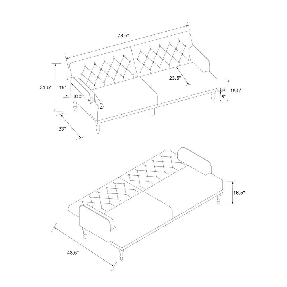 - Product dimensions: Sofa – 78.5 in. L x 33 in. W x 31.5 in. H. Sleeping – 78.5 in. L x 43.5 in. W x 16.5 in. H. Weight limit: 600 lbs. Net weight: 94.5 lbs. Shipping dimensions: 40 in. L x 44 in. W x 16 in. H. Gross weight: 107 lbs.