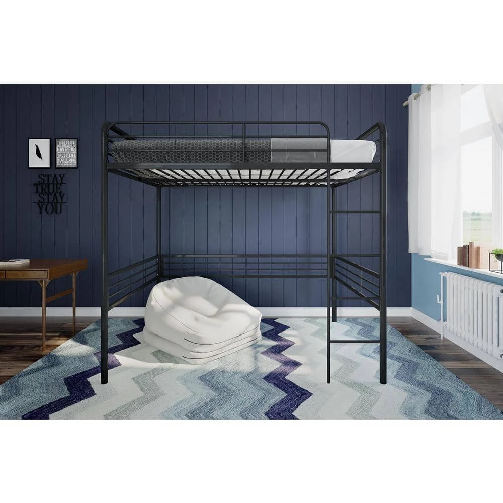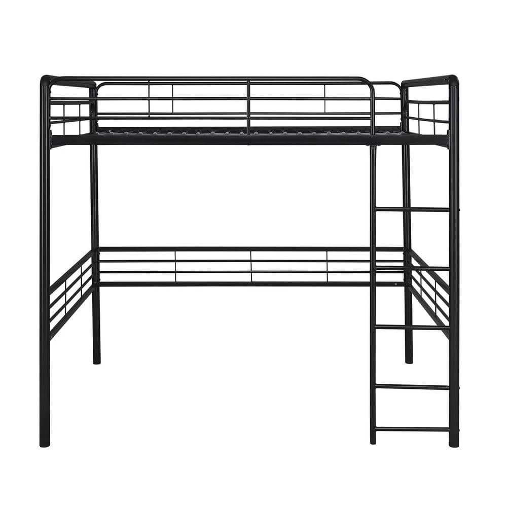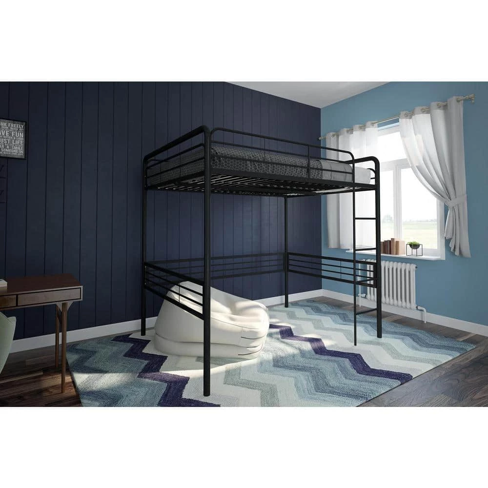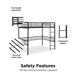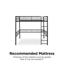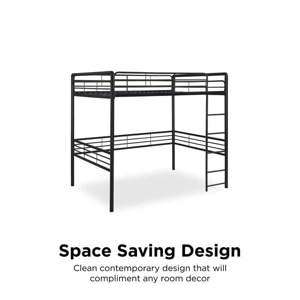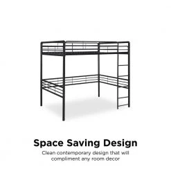 The DHP Amelia Full Metal Loft Bed will make your room bigger with its incredible space-saving design. Its modern industrial look matches perfectly any decor . The loft has a height of 59 in., perfect to add a small couch, play area, storage and even another twin size bed. The frame is high-quality, robust, compact and secure. It includes guardrails, sturdy metal slats and an attached ladder to ensure safety when climbing up and down. The DHP Amelia Full Loft Bed is perfect for any small living space.