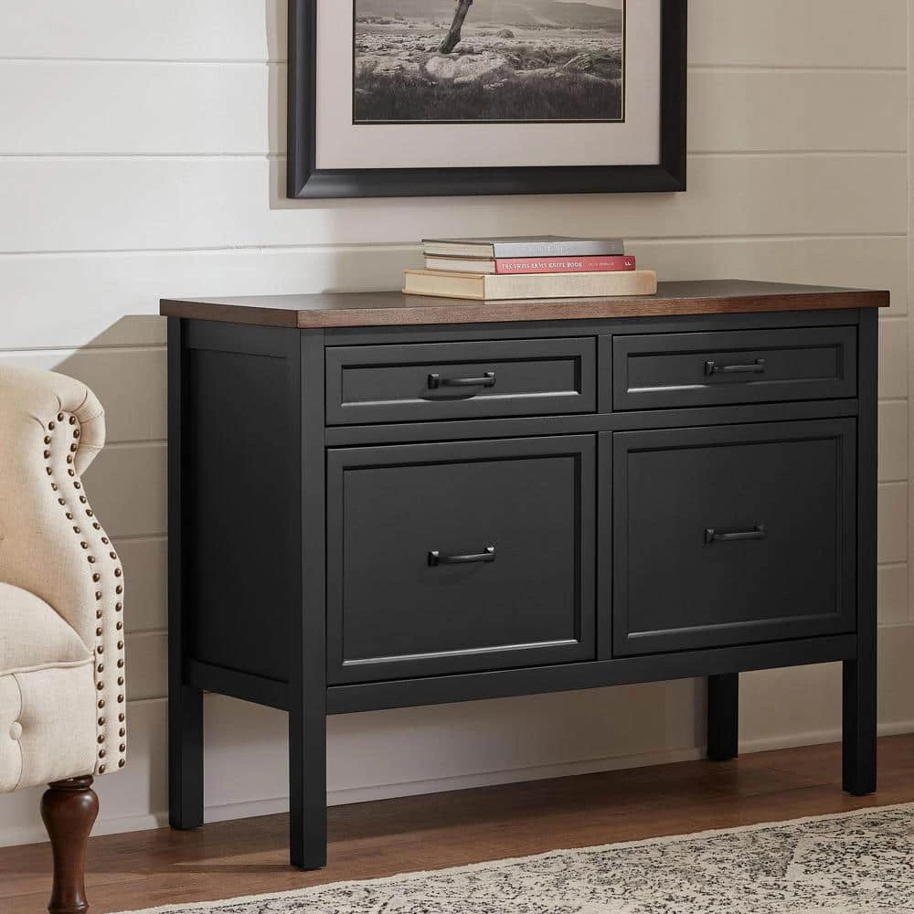 Our Home Decorators Collection Appleton file console is a handsomely designed piece of furniture that offers discreet storage. Crafted like fine cabinetry, the two-tone lateral cabinet has a classic painted finish balanced with a warm brown top. Store office supplies and hanging folders inside the multiple drawers.