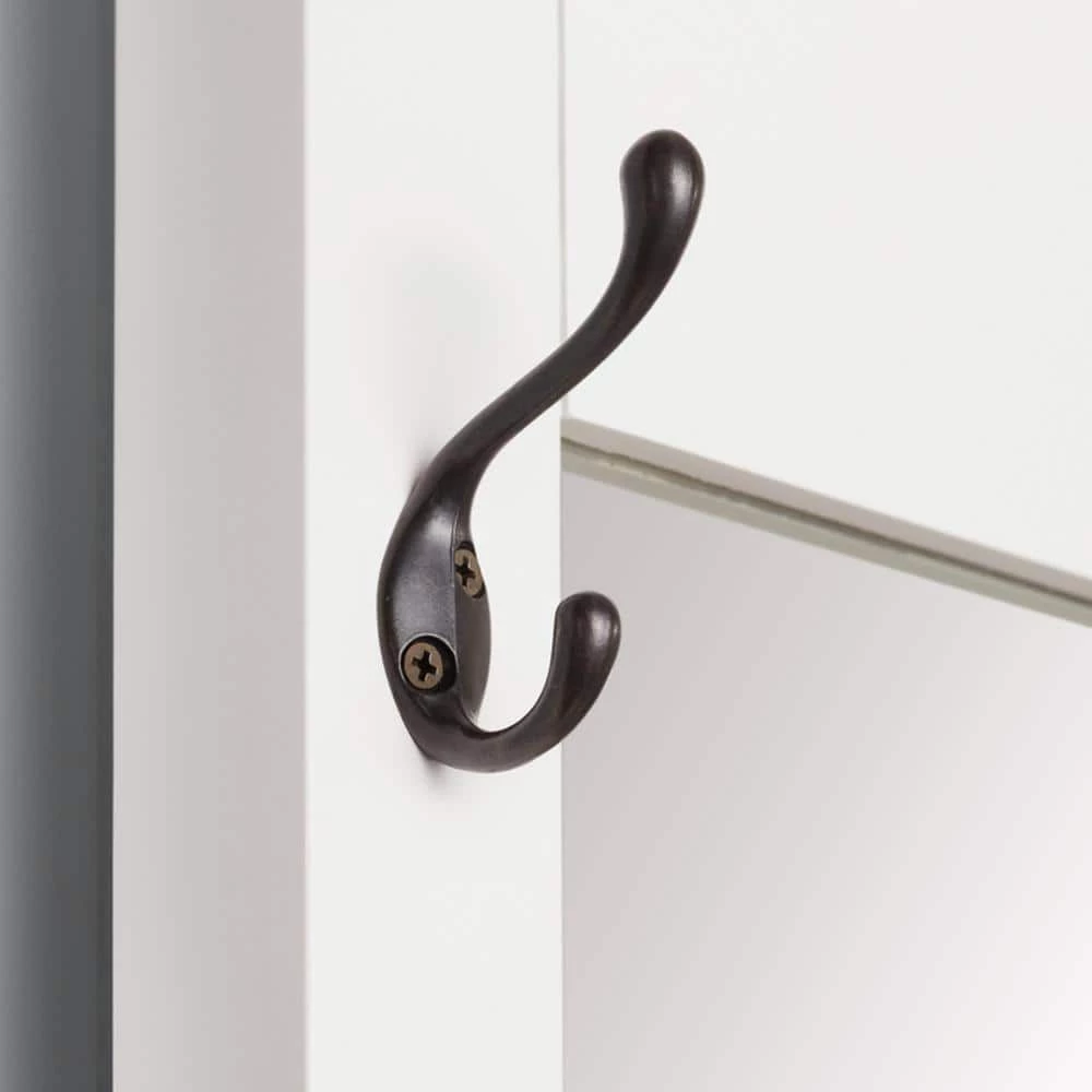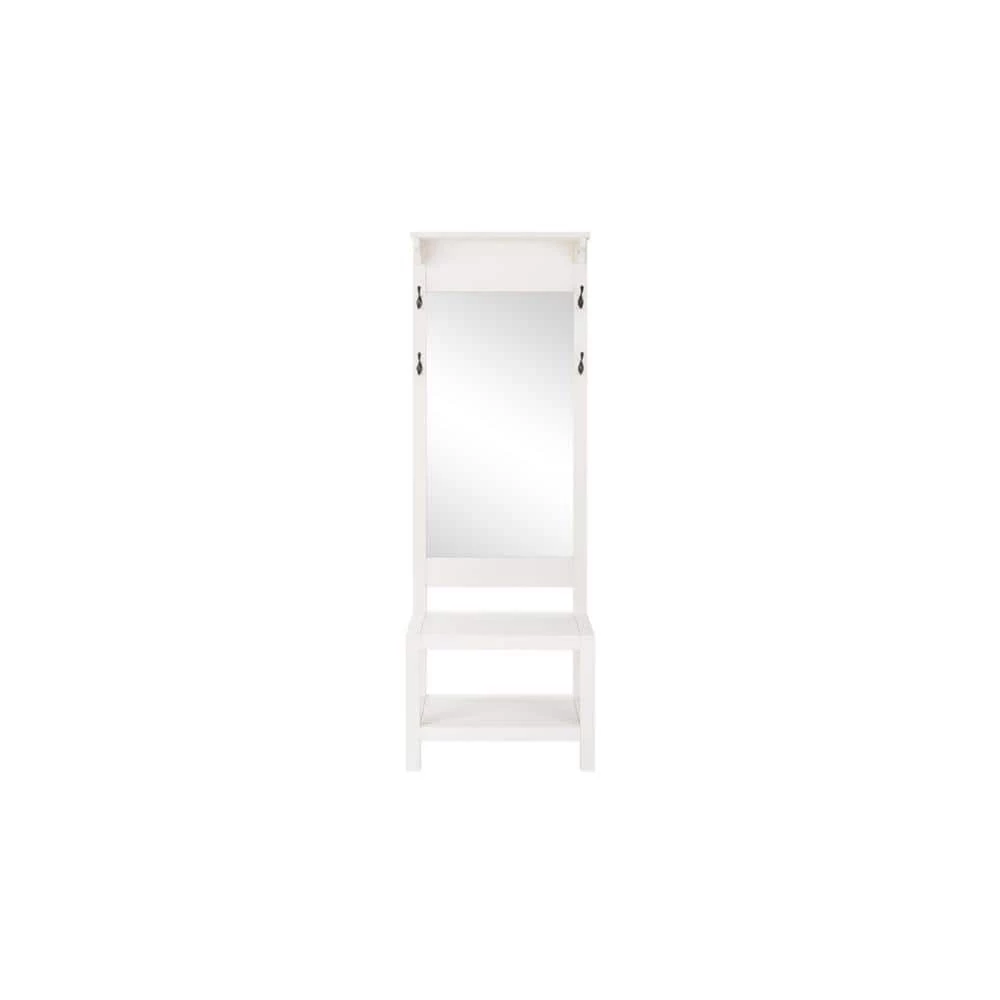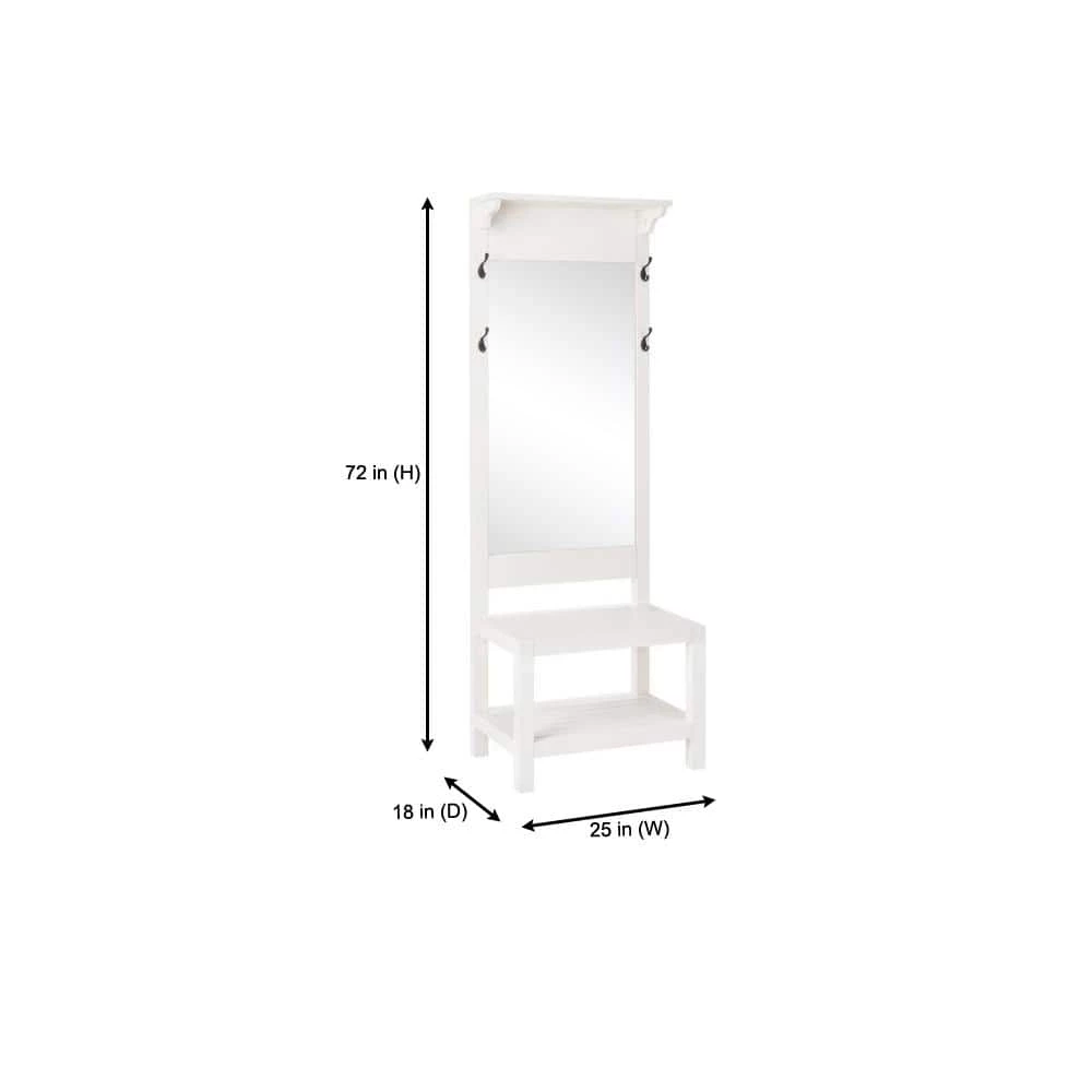 Conquer entryway clutter with our Home Decorators Collection Baythorn hall tree. The open, streamlined profile is a master at organizing hats, scarves and more. An expansive mirror frames the bench seat, with four hooks flanking the overhead shelf. Stow footwear on the lower shelf or add baskets for concealed storage.
