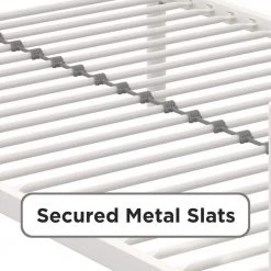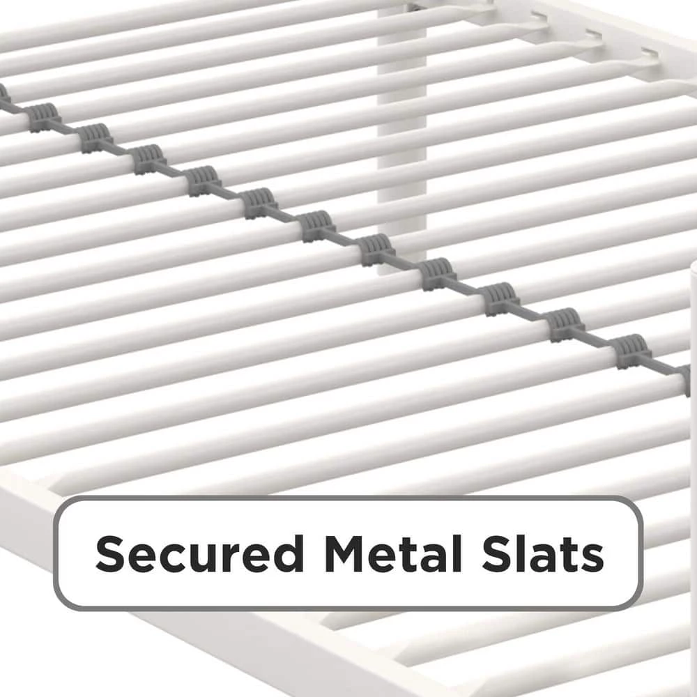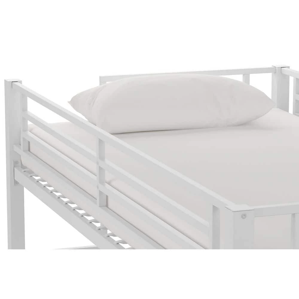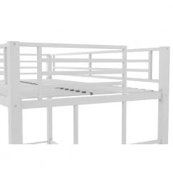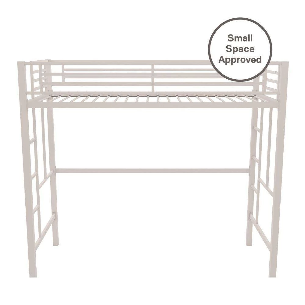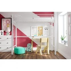 A smaller sized kid’s bedroom is no match for the DHP Benjamin Twin Metal Loft Bed. This furniture solution gives any teenager or child a perfect spot for sleep, study or solitude with a large 58 in. clearance below the top twin bunk that can be used as a gaming hub, study nook or storage center. Constructed with a sleek metal frame that is both strong and modernly styled with vertical and horizontal angular lines, the bed features 2 integrated ladders, each on opposite ends, to make climbing in and out of bed simple. And full-length guardrails blend effortlessly with the bed’s design while providing safety against accidental falls. Featuring a durable metal slat base on the upper bunk, your child’s mattress will be fully secured so no additional box spring or foundation is required. A quality addition to your home, the DHP Benjamin Twin Metal Loft Bed is a style and space saving winner. Twin size mattress not included.
