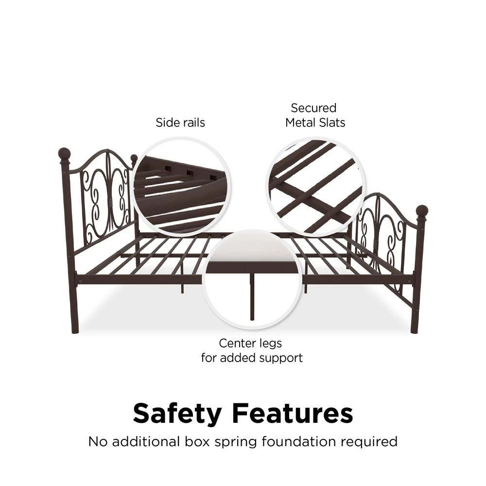 - Metal slat system provides great ventilation. Slats allow air to pass freely beneath your bed, keeping your mattress fresher longer. Additional box spring or foundation not required.