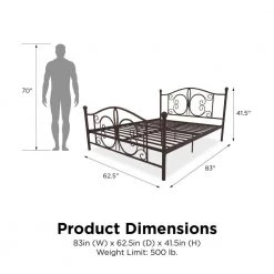 The DHP Betty Metal Bed features a fine detailed, deluxe, and sophisticated frame. The Bettys’ refined design featuring the sleek metal frame can complement any room. Its strong metal slat support system allows air to flow under the mattress which as a result, will keep your mattress fresh all while providing comfortable support. Finish the look of this lavish looking bed with your favorite mattress, fun accent pillows, and a warm comforter, and get ready to sleep through the night.
