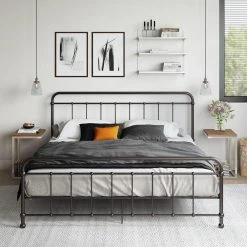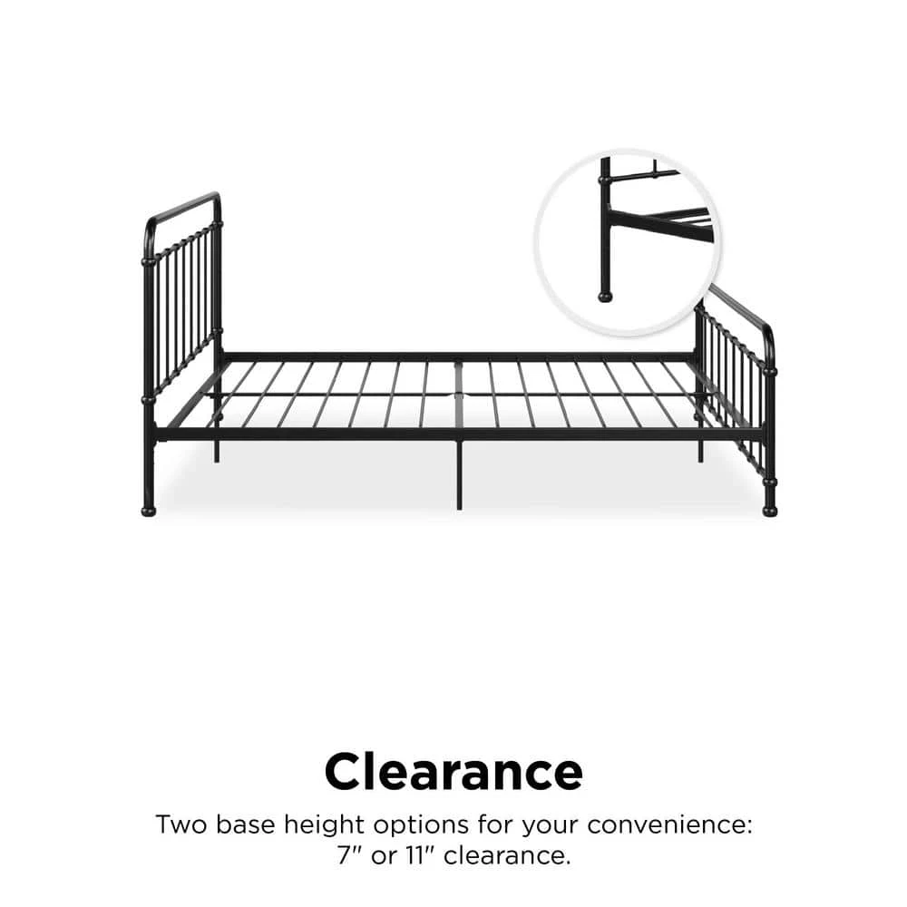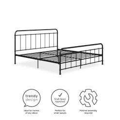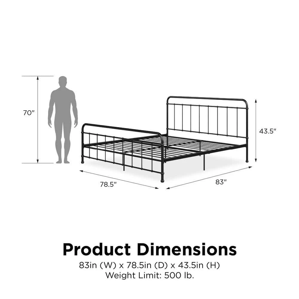 Sleep in style with our DHP Bice Metal Bed. Its minimalist design brings a chic and elegant touch to any sized bedroom. Carefully designed with a metal frame, side rails and supporting legs, we guarantee you long lasting support and durability. Benefit from added support for both your bed and mattress thanks to its secured metal slats. Choose from two base heights: either a 7 in. or 11 in. clearance, to enjoy extra space right under your bed. This extra storage space is practical and helps to keep the clutter contained. Available in white and black in all Twin, Full, Queen and King sizes. Ships in one box for easy handling and assembles effortlessly. Complete your bedroom by simply adding some decorative pillows, covers or picture frames for the perfect look you’ve always dreamt of.