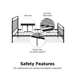 - Includes metal side rails for guaranteed stability and durability as well as center metal rail and added legs for extra support