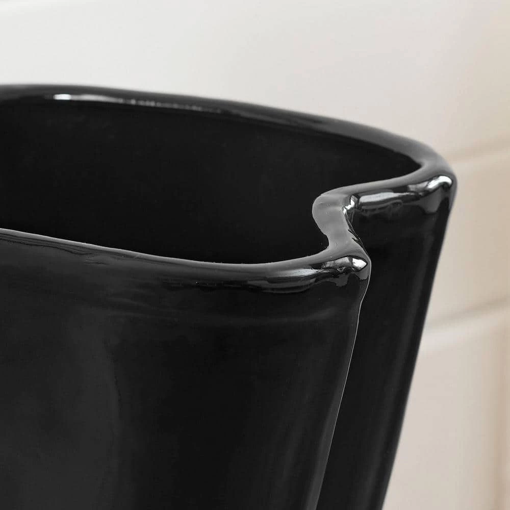The Black Boots Umbrella Stand from Home Decorators Collection is handcrafted from ceramic that ensures durability and resistance to chips and cracks. The glossy black finish of this stand accentuates the visual appeal of your farmhouse-style decor. Its spacious design allows you to stow up to five large umbrellas. With its unique boot-style design, this umbrella stand also serves as a decorative accessory for your entryway passage. Wipe this stand with a soft, dry cloth to keep it clean.