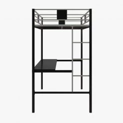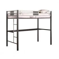 The Silver Screen Loft Bed brings a cool, chic look with practical use to any bedroom. The clean and contemporary silver metal frame is durable and stable and still catches your eye with its design flairs. The desk provides an ample area for any use and is a convenient space-saving alternative for smaller rooms.