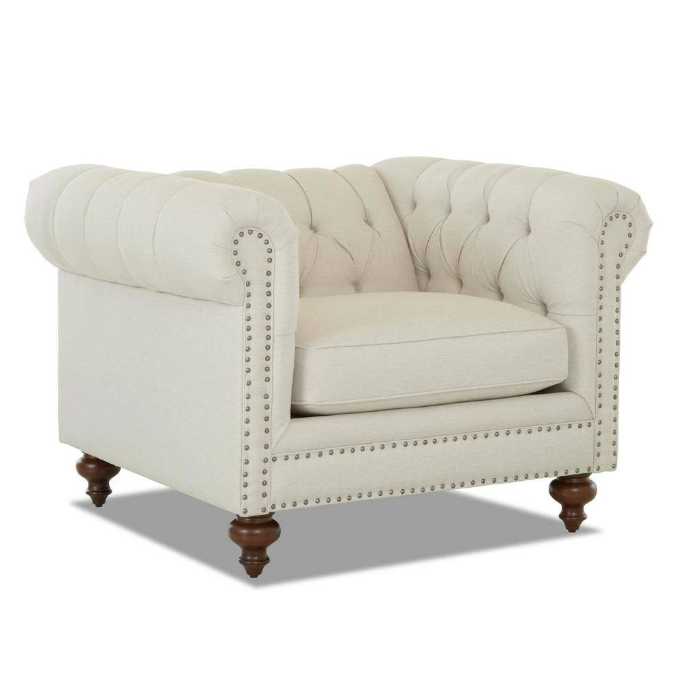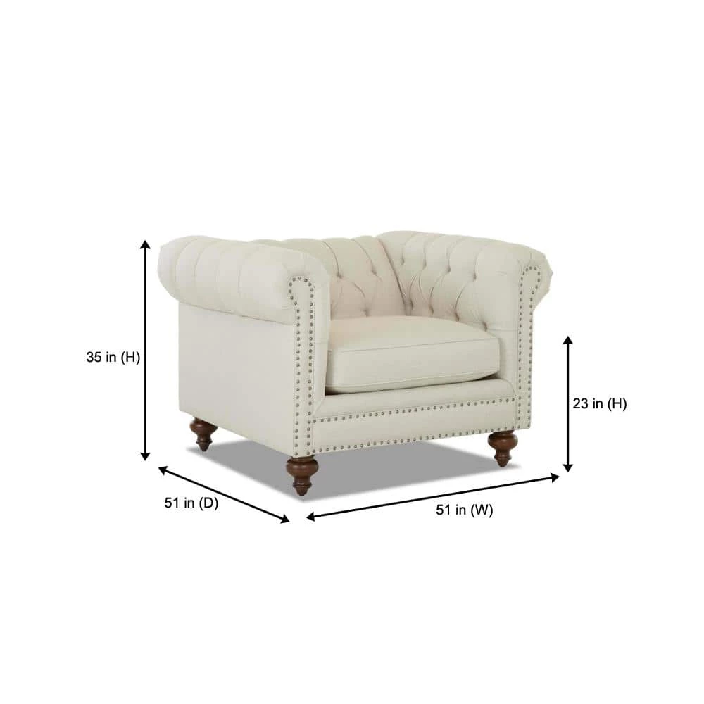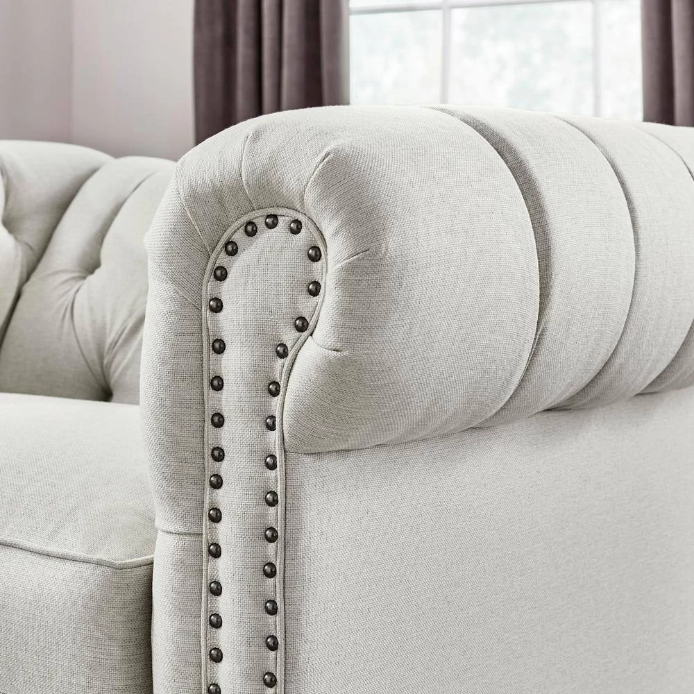 - Classic Chesterfield style including a tufted back, classic rolled arms with antique nickel nail head detail