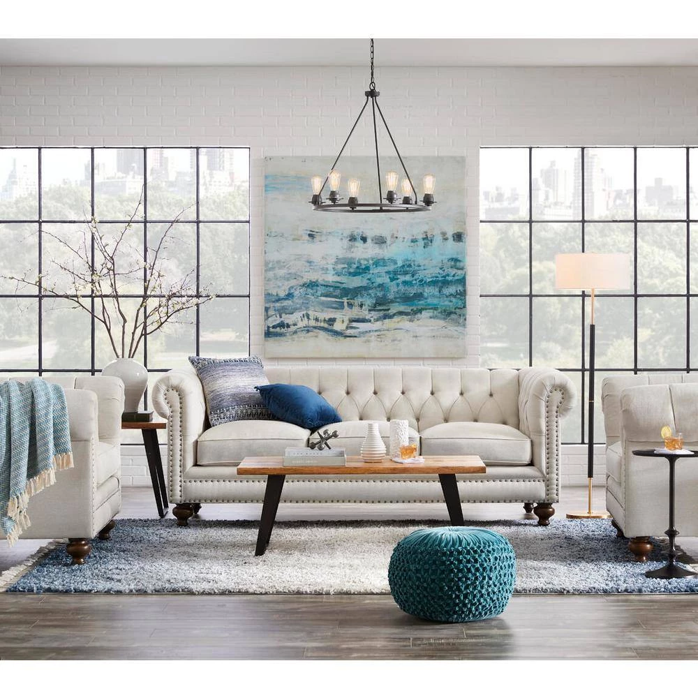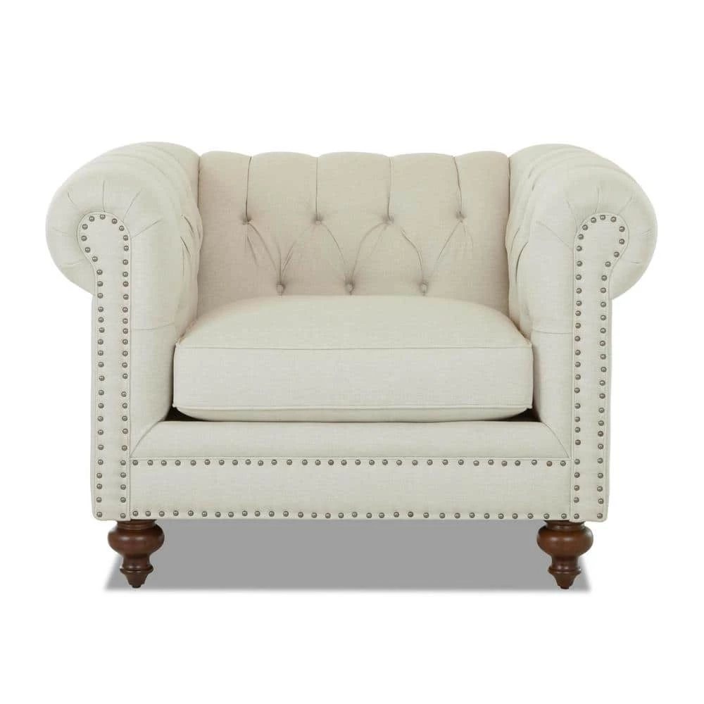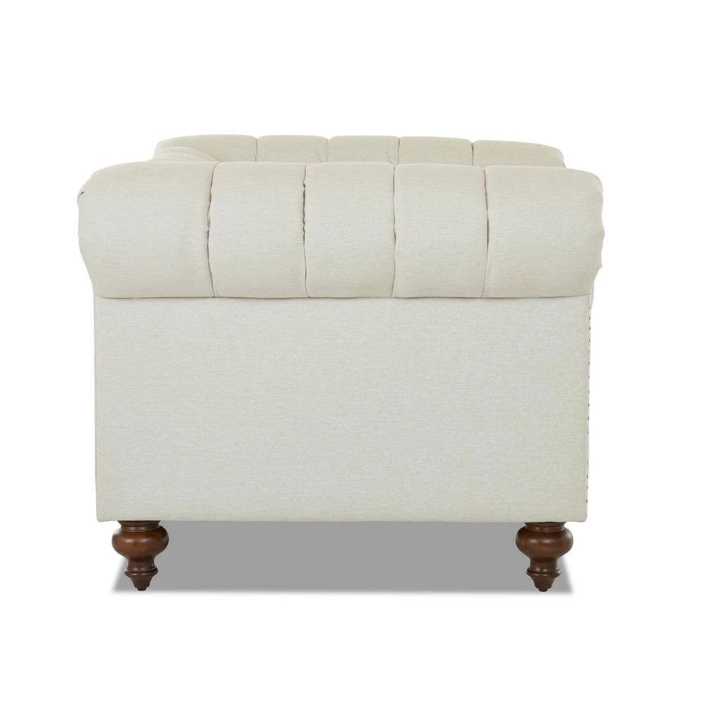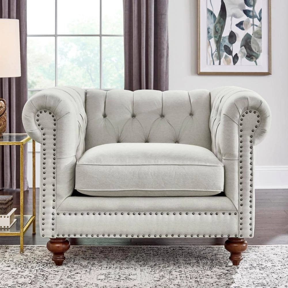 - Classic Chesterfield style including a tufted back, classic rolled arms with antique nickel nail head detail