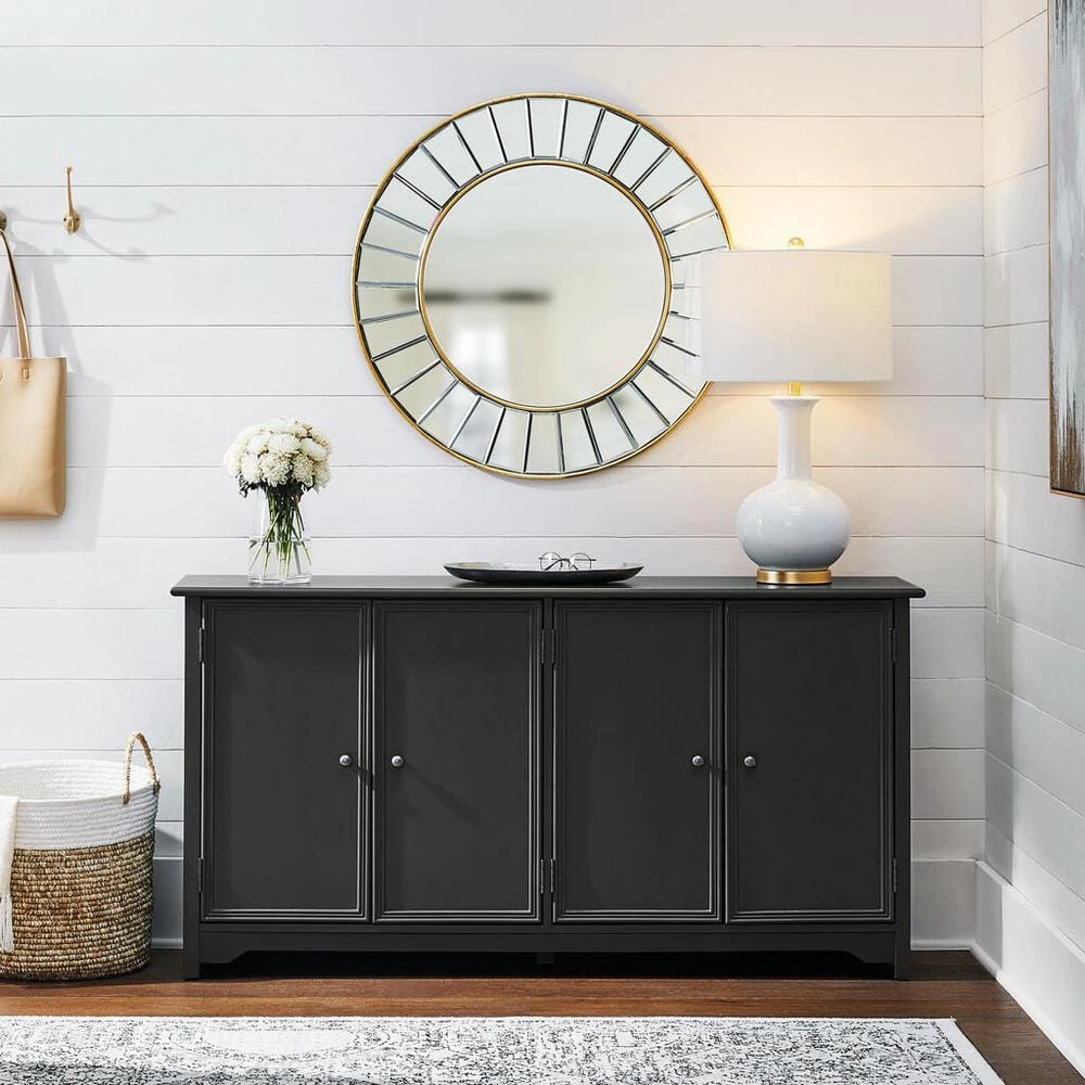 The Bradstone 4-Door Console is constructed of a sturdy wood frame that is built to withstand years of use. The buffet will refresh any decor scene with its appealing design. It’s the perfect spot to store linens, serveware or more.