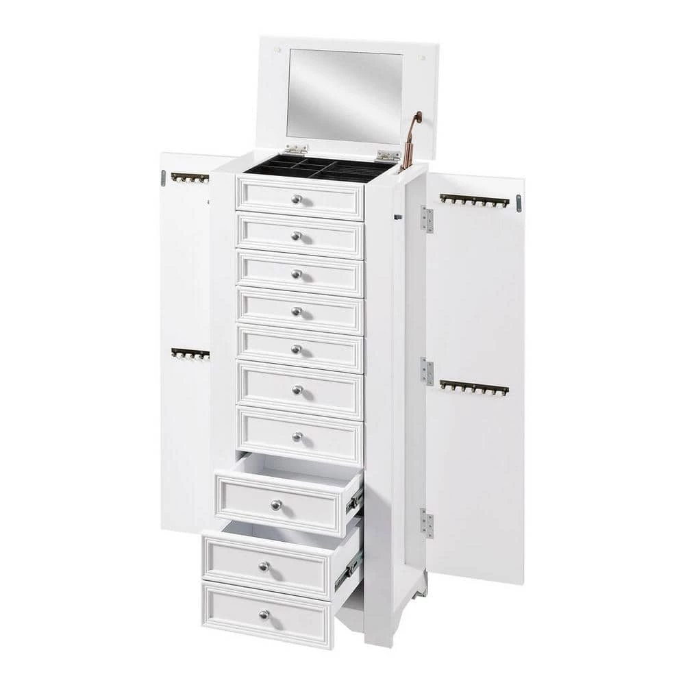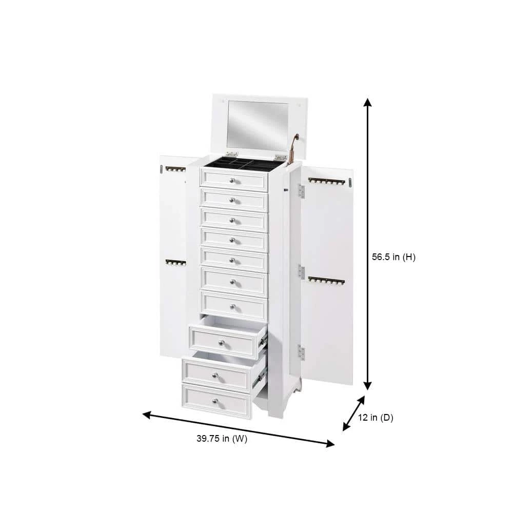 This armoire is beautiful and functional. It fits all my jewelry perfectly, and the white design is timeless. Very pleased with this purchase.