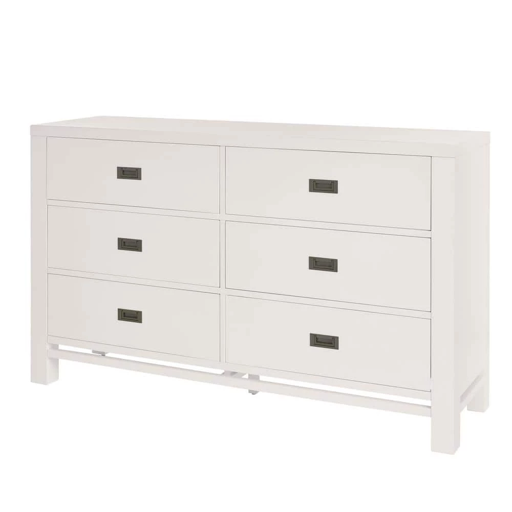 Dress up your bedroom with the Calden Bright White Wood Six-Drawer Dresser exclusively by the Home Decorators Collection. The Bright White finish creates a cool, clean look that fits in with a range of styles from modern to farmhouse. Six drawers deliver a generous amount of space for your sweaters and slacks, while a wood construction supports lasting everyday use. Set up this HDC Bright White wood six-drawer dresser in your dressing room or bedroom to help keep your clothes neat and tidy.