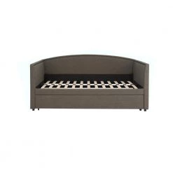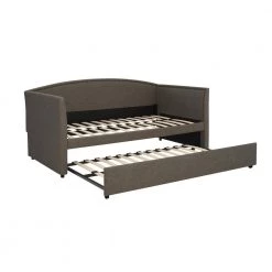 With the DHP Carolina Linen Daybed, you can sit during the day and sleep at night. Designed with an antique nail head trim, this daybed is both classic and unique. Take advantage of the trundle, allowing you to create 2-twin-sized beds. Simply pull out the trundle, lock the 2-casters to ensure it stays in place and instantly enjoy the extra sleeping space. The wooden slats on the daybed and the trundle allow the air to pass freely beneath you. Thanks to this innovative feature, your mattress will stay fresher and will relieve any pressure points. The metal side and center bars provide that added support, ensuring you and your guests a good nights rest. The DHP Carolina Linen Daybed supports up to 400lb and 225lb for the trundle. Available in Grey and Oatmeal, in a clean linen upholstery. Ships in 2-boxes and easy to assemble. This versatile daybed will offer functionality and versatility for the years to come.