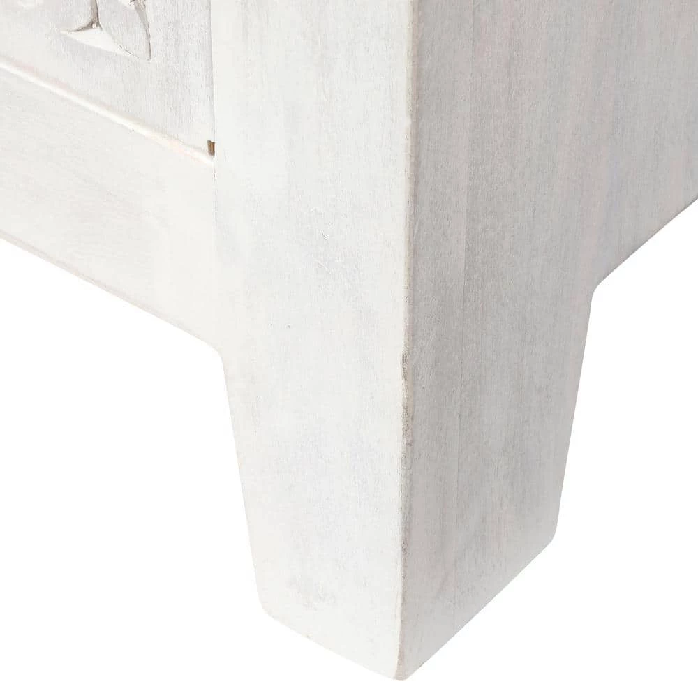- Whitewash finish gives it a vintage feel that can be complemented by other decor with faded finishes