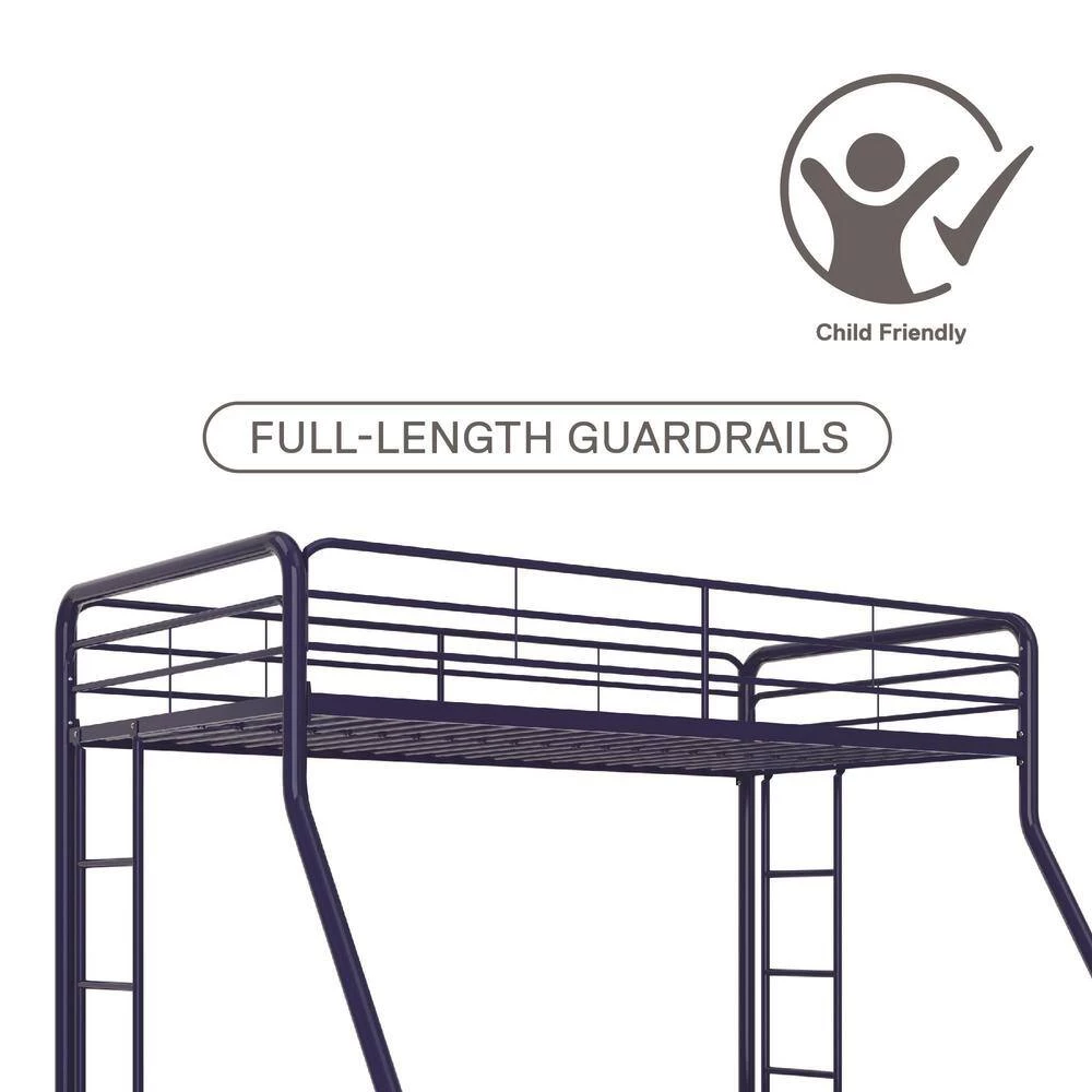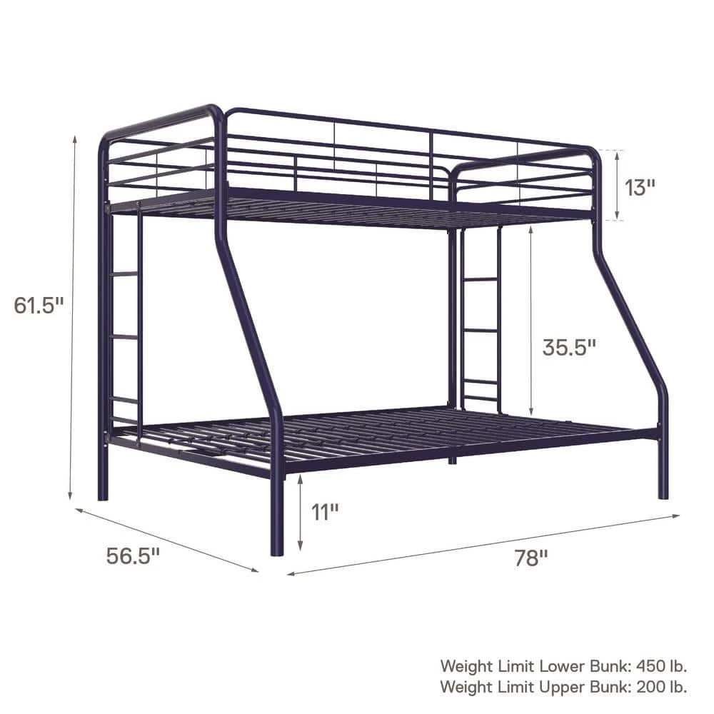 The DHP Cindy Twin over Full Metal Bunk Bed is elegant and functional making it a perfect addition to any room. It comes with contemporary design and durable steel frame construction ideal for any modern setting. Designed with safety in mind, this bunk bed includes full-length guardrails and a sturdy ladder.