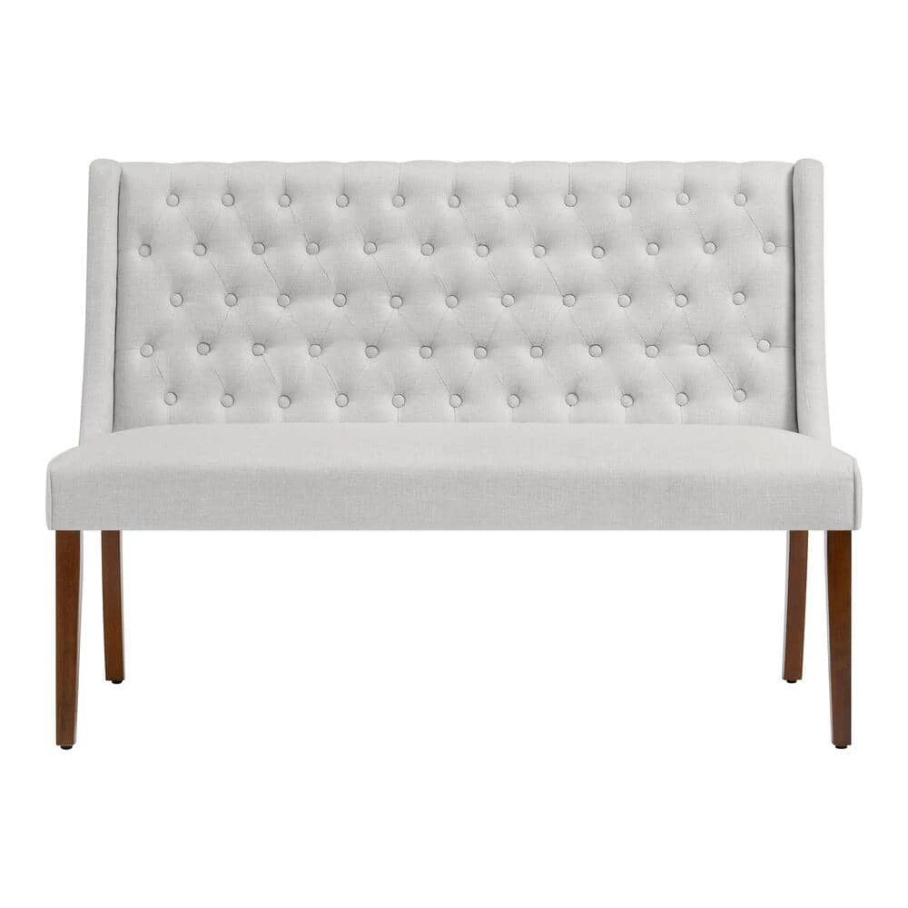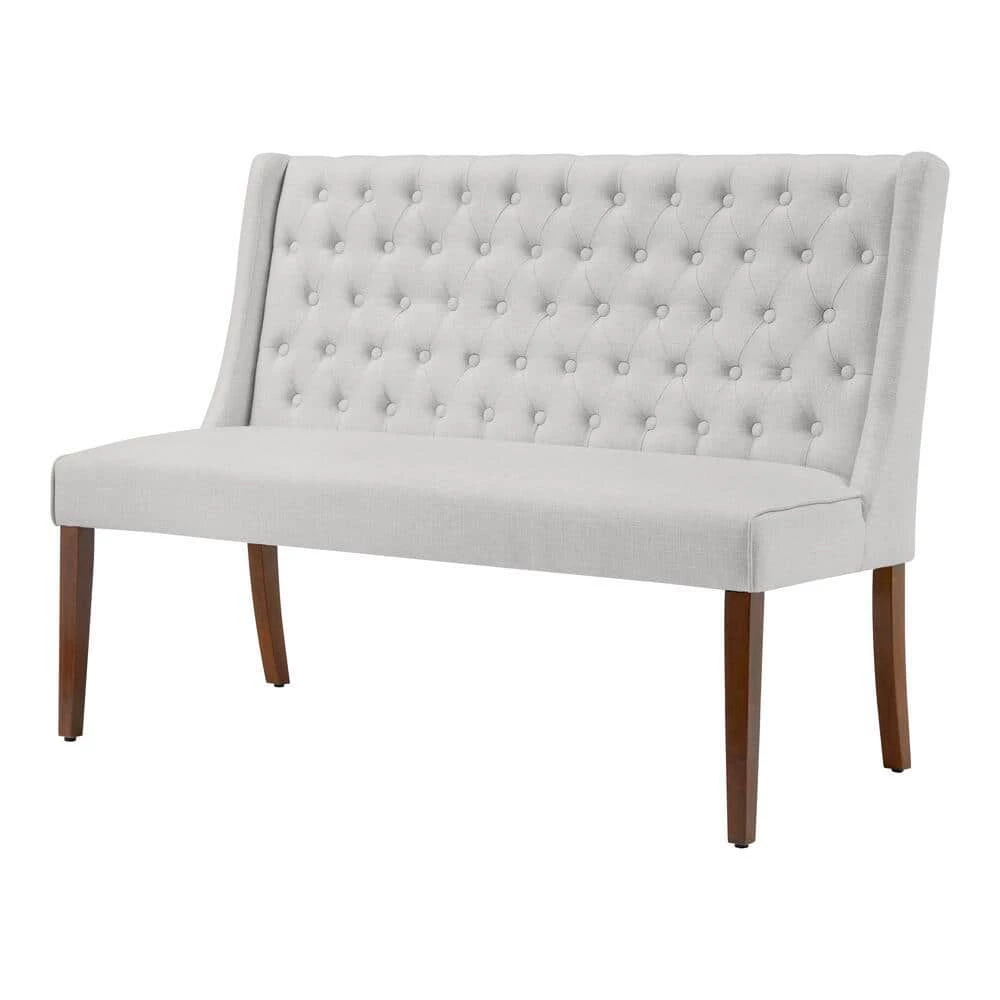 This dining bench looks just as good at the dining table or as a sofa in the living room. The modern styling is simplistic, with walnut-finished solid wood legs firmly support the construction and thickly foam-padded seat line with tufting and button high-back backrest, provides the most comfort and beauty. Its rectangular shape is a welcome addition to an entry or mudroom and there’s enough room to place storage bins underneath it. You could comfortably sit on it to have an enjoy full dining time or totally lie in it to get a wonderful sleep.