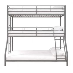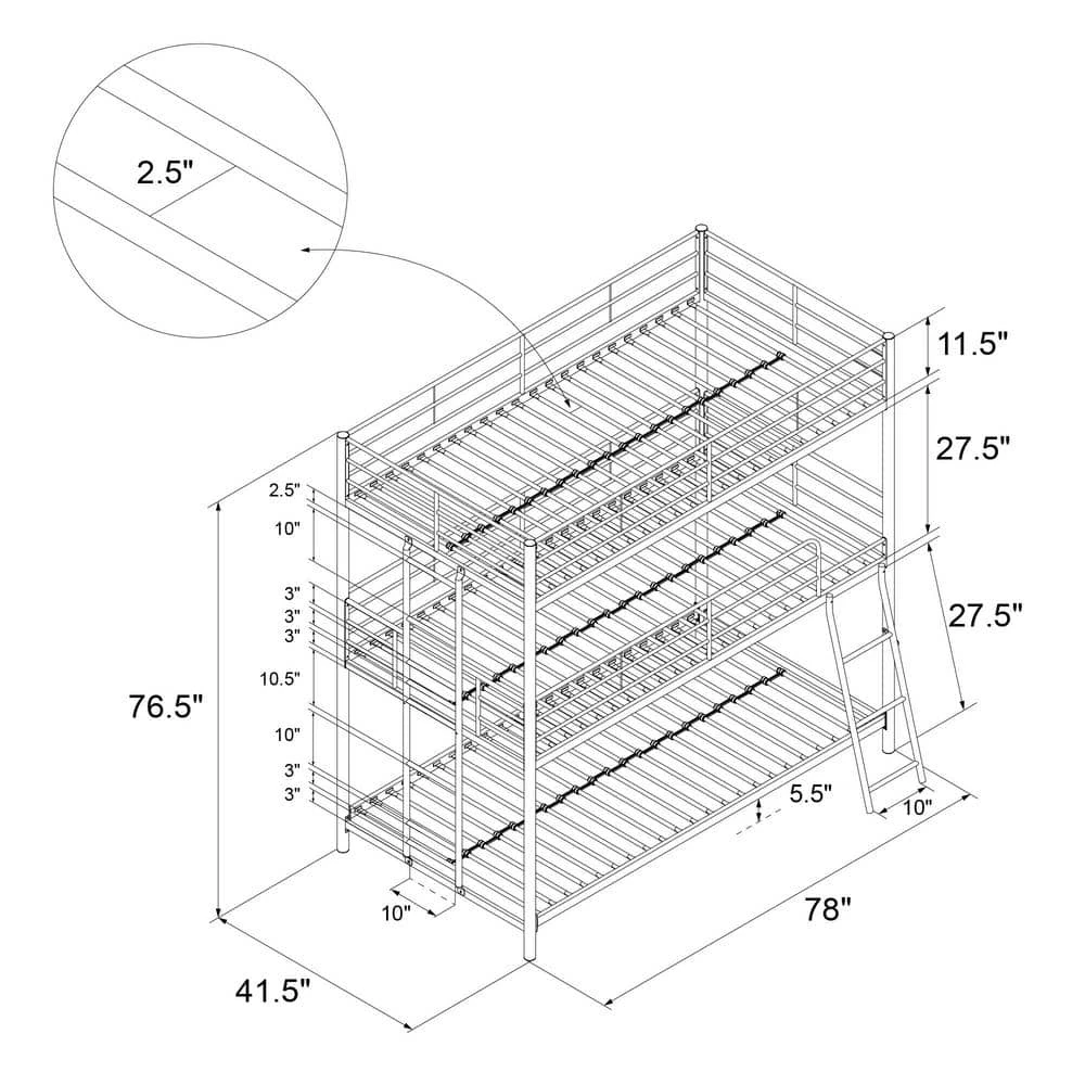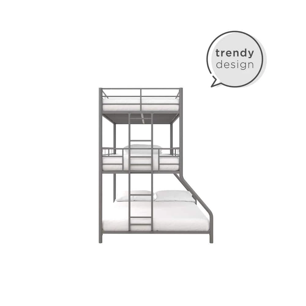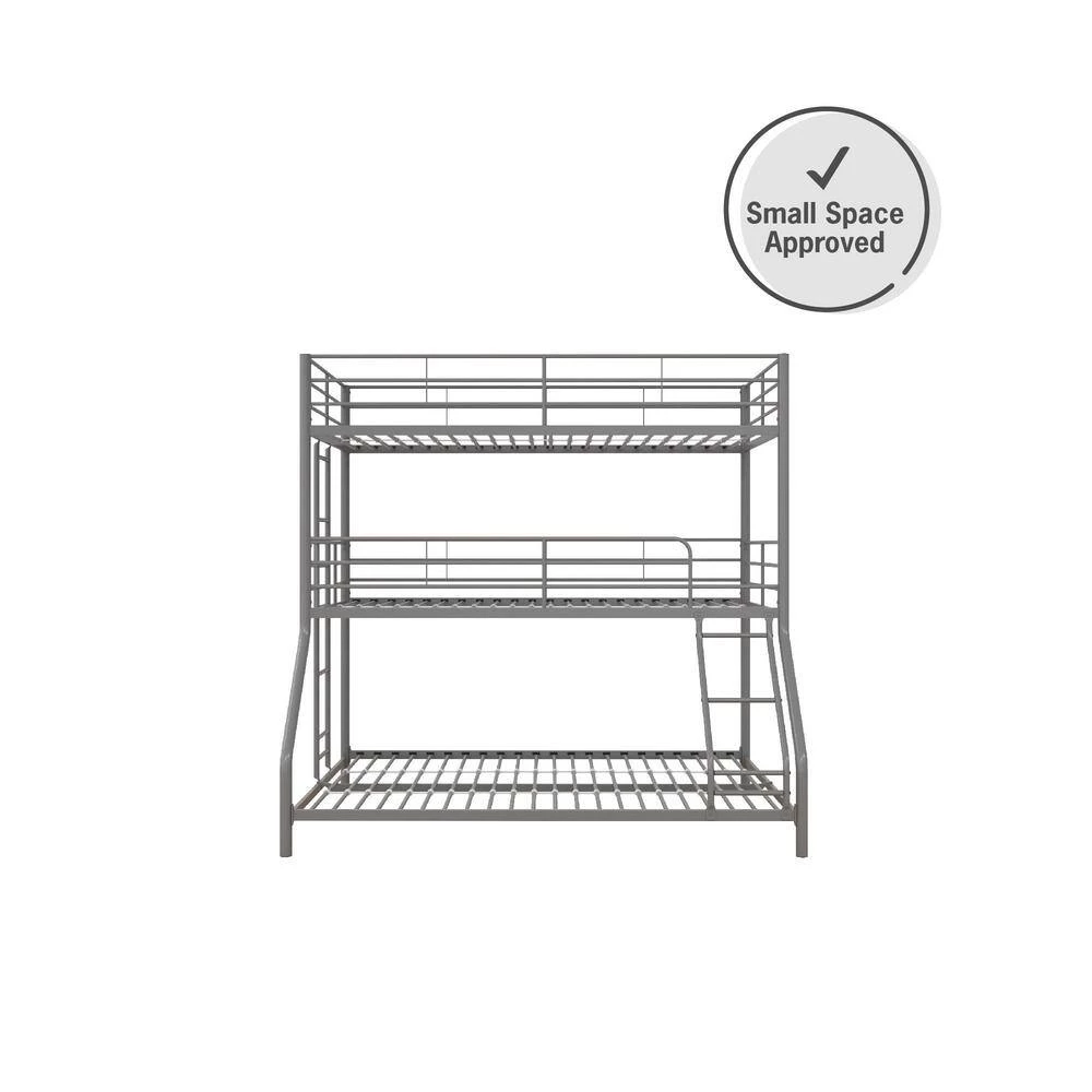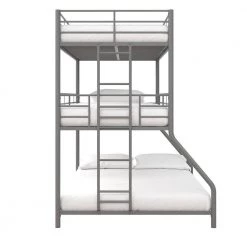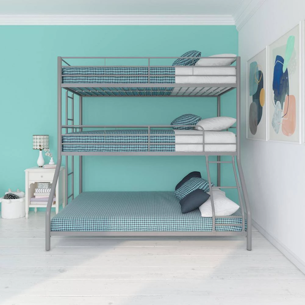 The DHP Cormac Metal Triple Bunk Bed is the perfect combination of functionality and fun. The Cormac uses the bedroom’s vertical space to create 3-beds for your children and their friends to sleep on after a day of having fun. The best part is that it takes up the same amount of bedroom space than a traditional bed and leaves plenty of room to play board games or have a study session. Strong and sturdy, the all-metal frame is built with secured slats, full-length guardrails and 2-secured ladder to ensure safety and durability. Fits standard size mattresses (sold separately) with recommended thickness between 4 in. and 6 in., and does not require any additional box spring or foundation. The DHP Cormac Metal Triple Bunk Bed is three times the fun of a regular bed. Offered in multiple size and color combinations.
