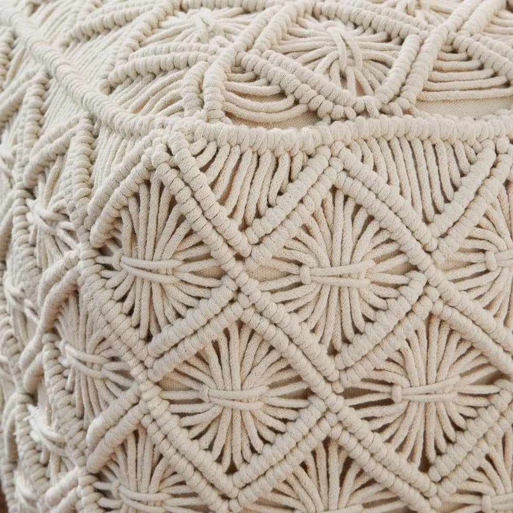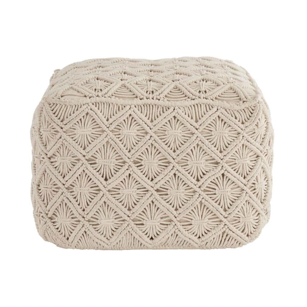 - Square cream cotton macrame pouf complements your decor
