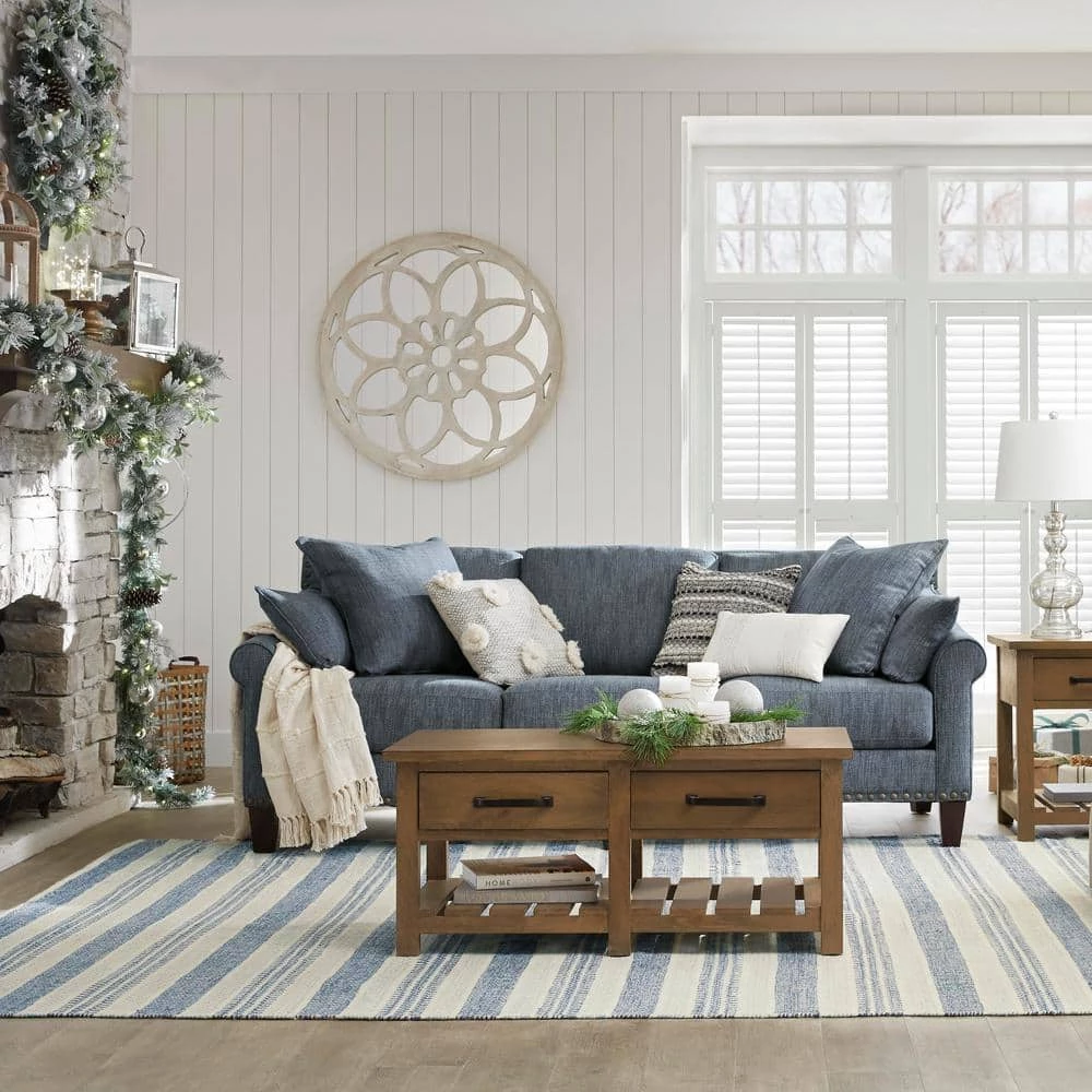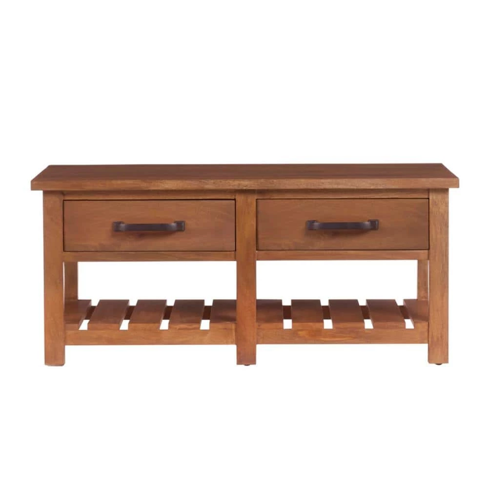 Designed for storage and display, our Home Decorators Collection Danforth coffee table suits a rustic farmhouse mood. Two drawers store remotes and books, with a lower shelf to showcase additional items. The rectangular table works equally well with sofas, loveseats and sectionals.