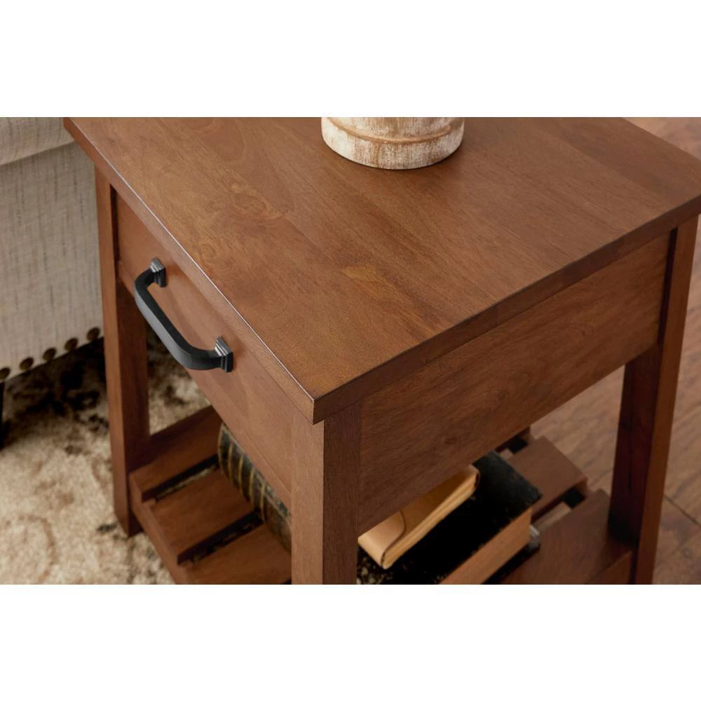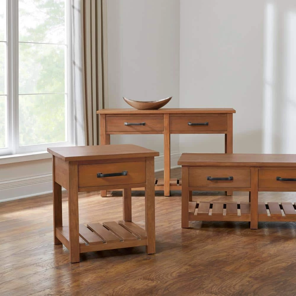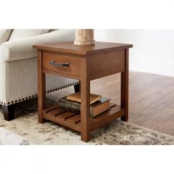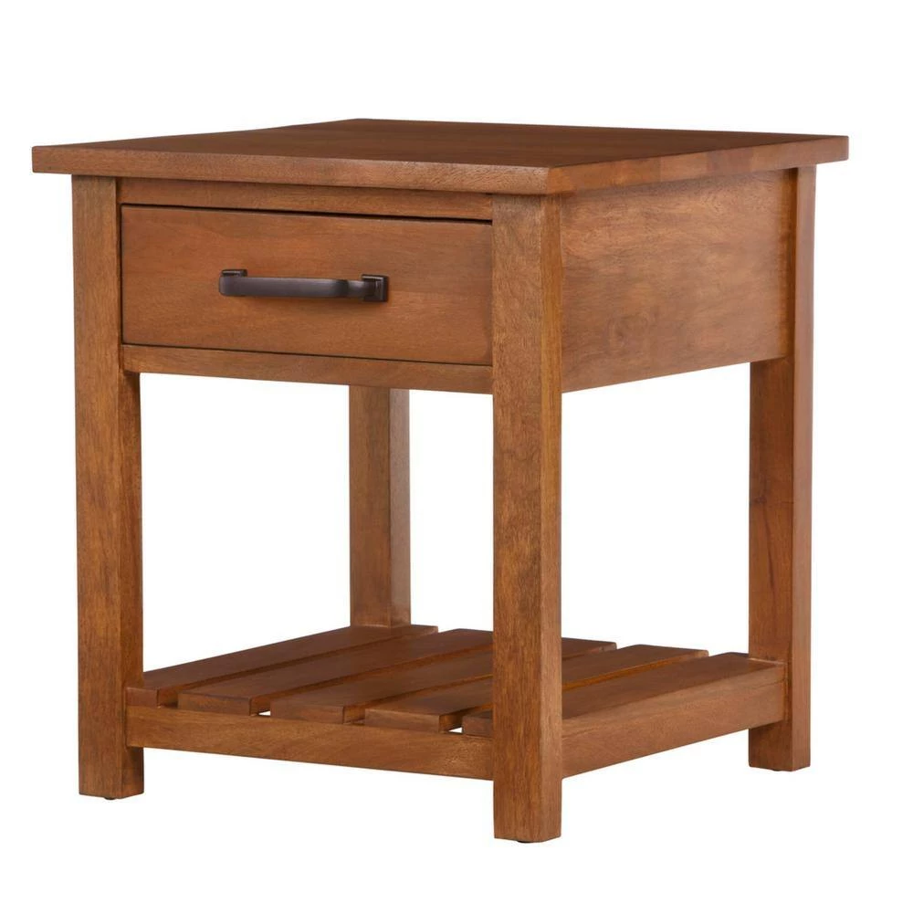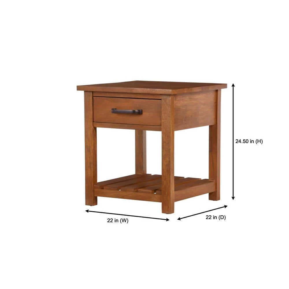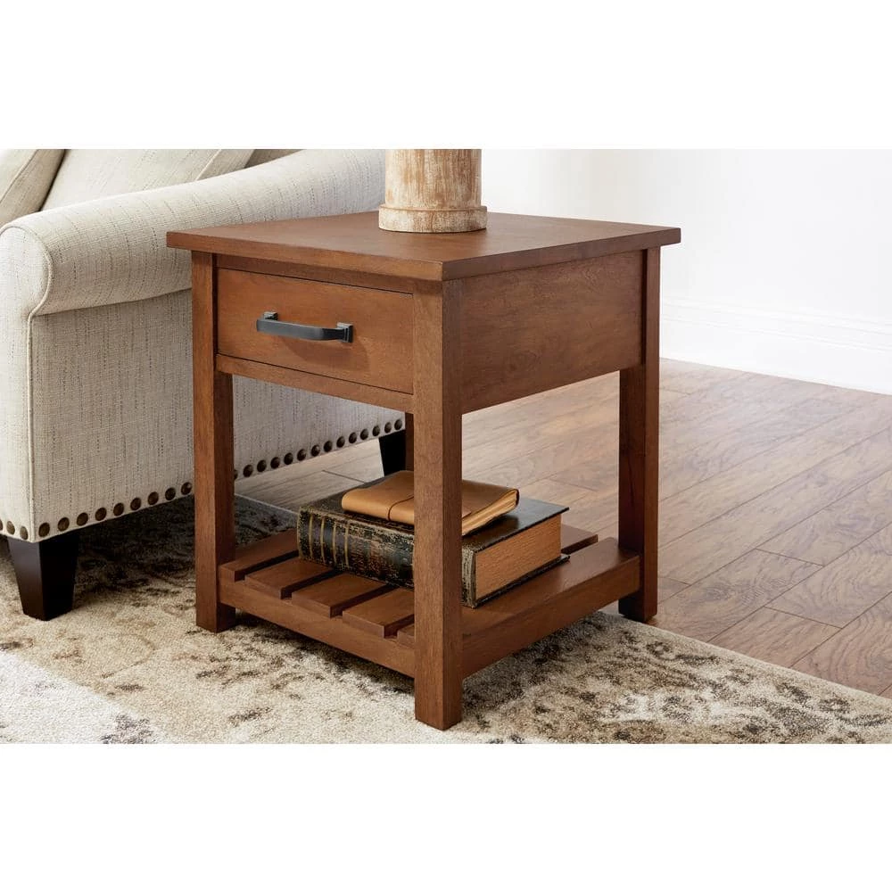 Designed for storage and display, our Home Decorators Collection Danforth accent table suits a rustic farmhouse mood. One drawer stores remotes and reading materials, with a lower shelf to showcase additional items. The square table works equally well beside sofas, loveseats and sectionals.