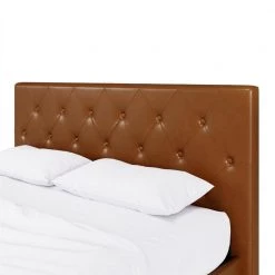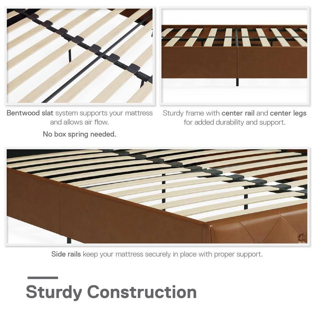 - Contemporary bed with lavish, padded faux leather upholstery and button tufted diamond detailing