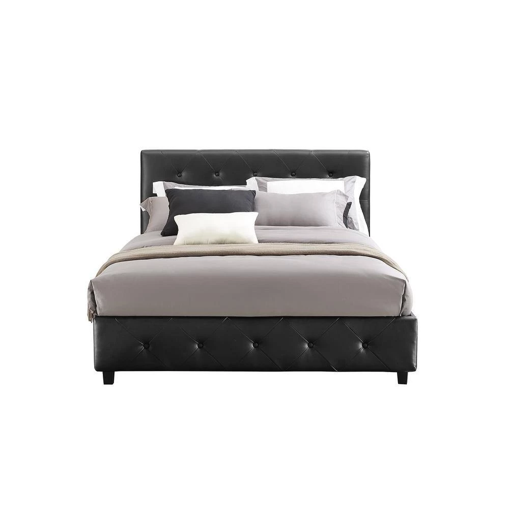 - Contemporary bed With lavish, padded faux leather upholstery and button tufted diamond detailing