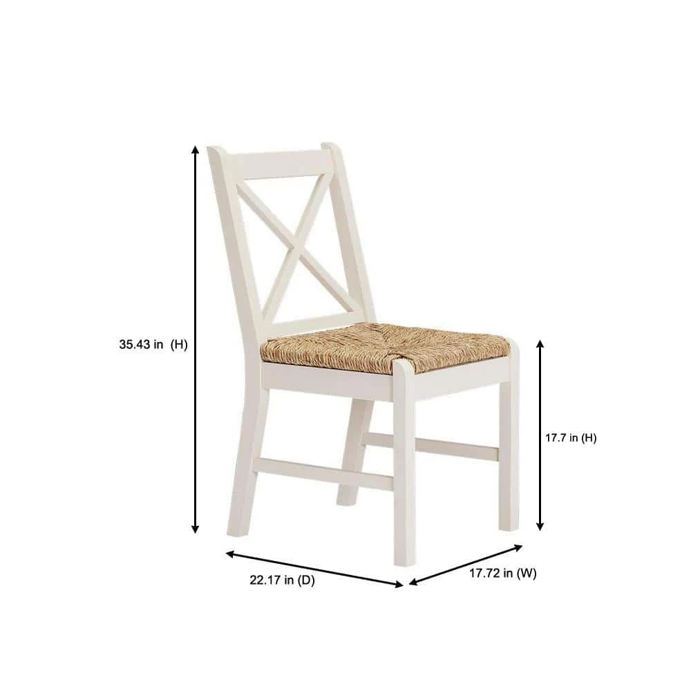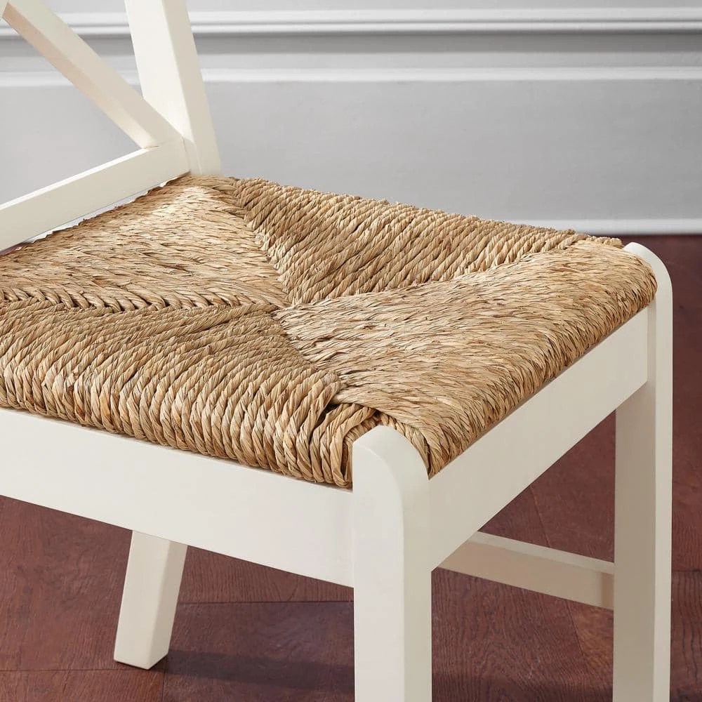 The Home Decorators Collection Dorsey dining chairs are a classic in the making. Modeled on a century-old farmhouse chair, ours have high X-backs and comfortable woven rush seats. The soft ivory hue refreshes any dining room space in an instant.