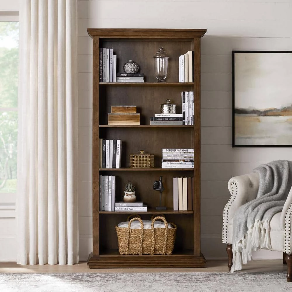 Our Eldridge Open Bookcase marries sturdy support with classic farmhouse style to bring you a substantial piece of furniture that makes a statement. Unique crown and foot molding offset the clean profile for a rustic yet elegant aesthetic. Open bookcases like this one offer easy access to your books.