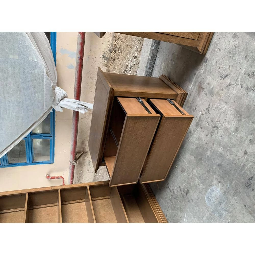 - Metal hardware in antique brass finish