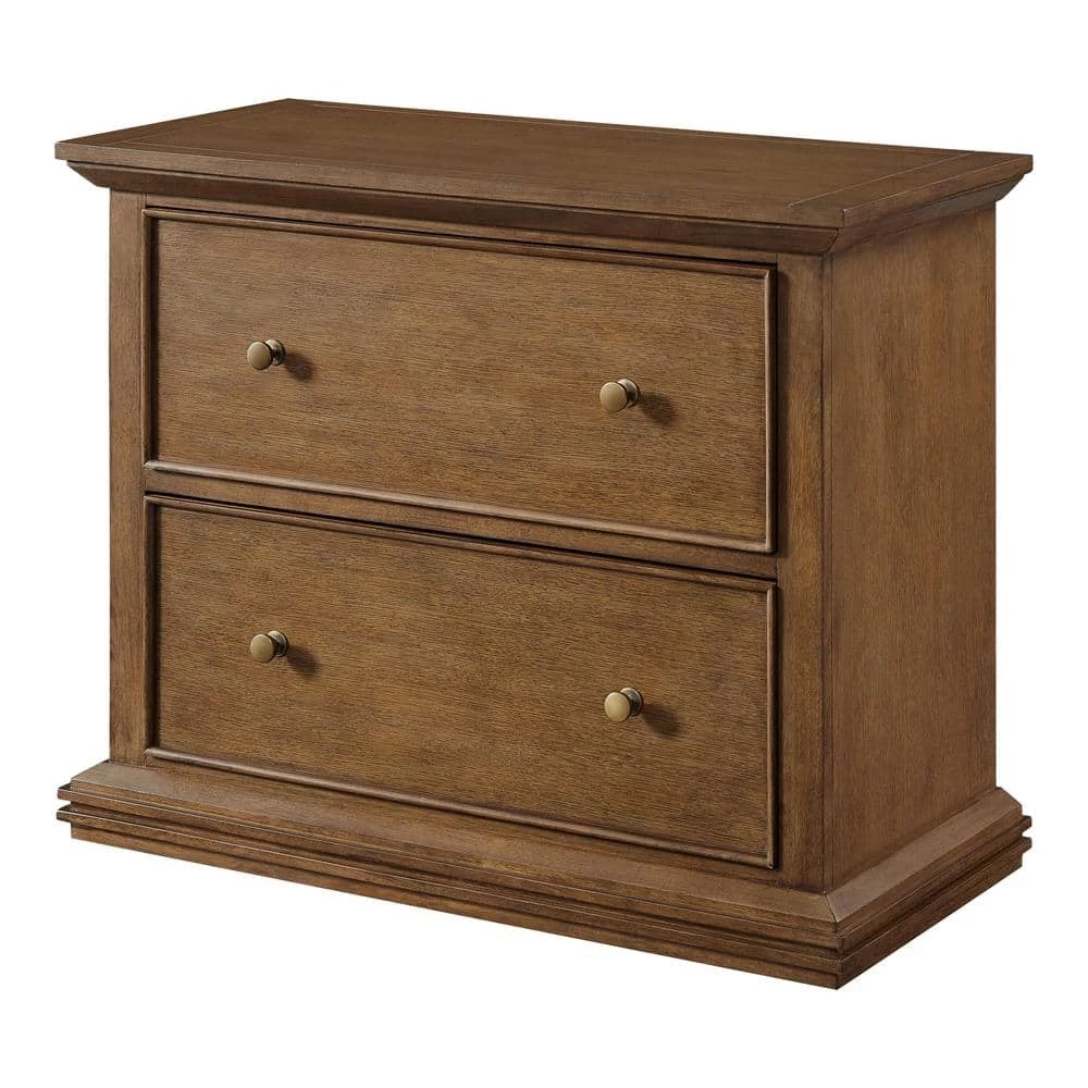 Keep your files sorted and stored safely in our 2-drawer Eldridge File Console. This wood file cabinet has a sturdy, classic farmhouse-inspired design, with angled molding at the top, fluted molding at the foot and recessed-panel drawers. Round hardware in an antique brass finish completes the classic look.