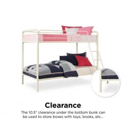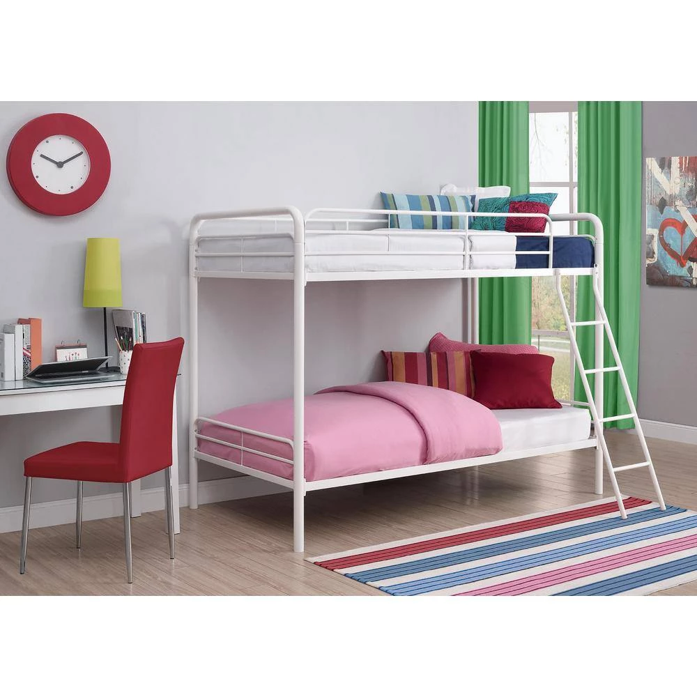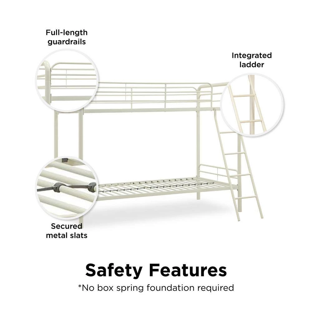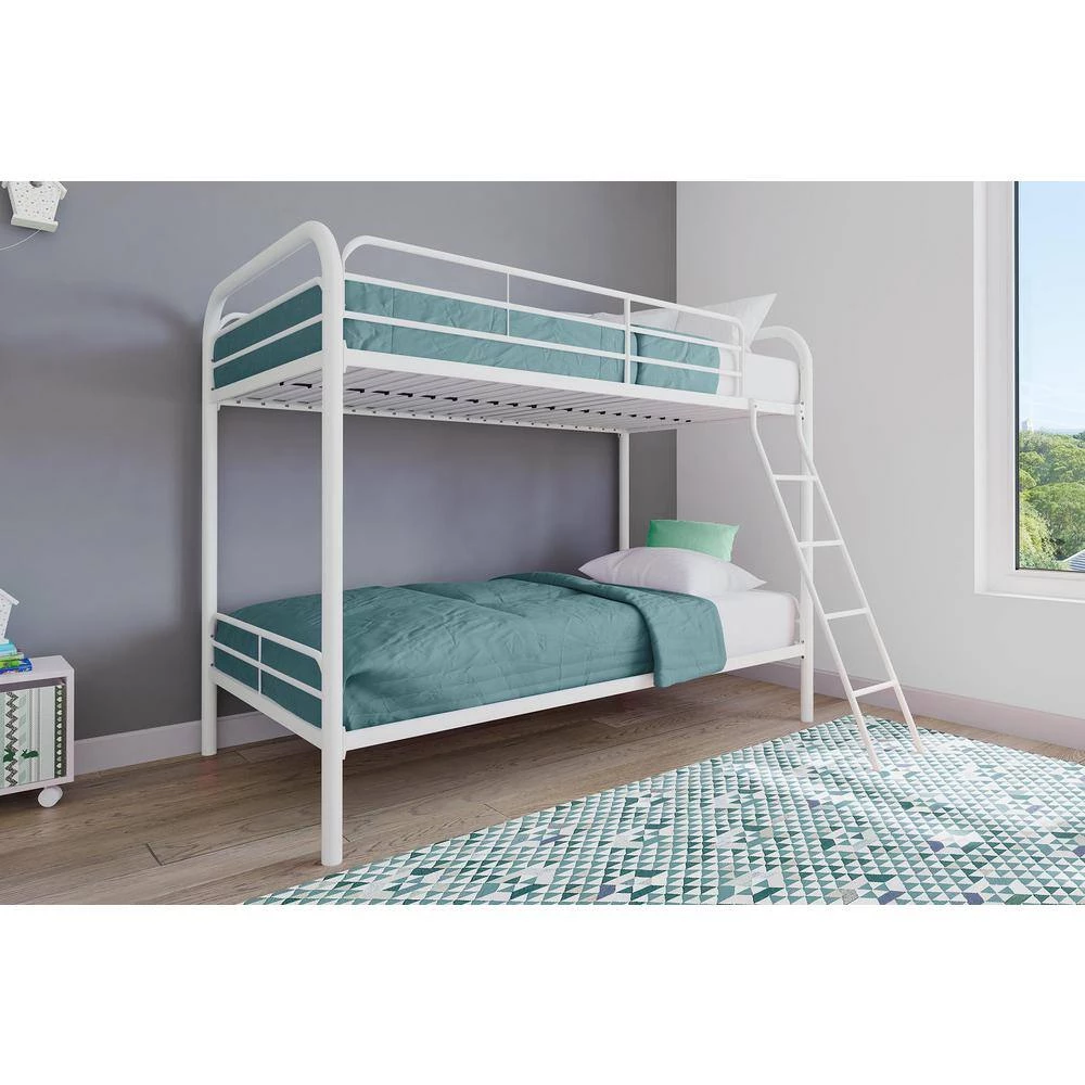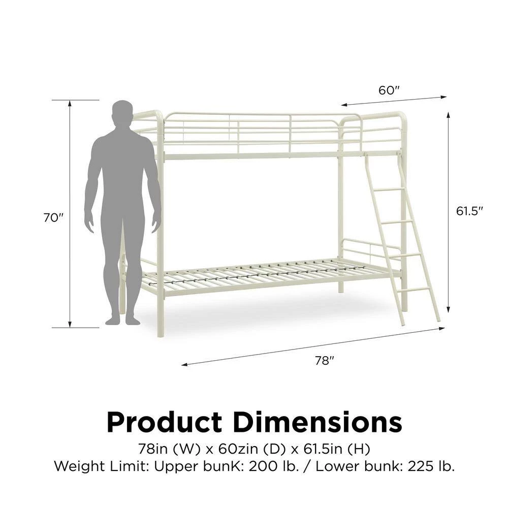 Simple, sleek, secure, stable and space-saving, DHP’s Elen Twin-Over-Twin Metal Bunk Bed meets all your needs and expectations. Easy to assemble, the bunk bed has been designed for the utmost safety, providing full-length guardrails and a ladder that attaches to the frame. Stylish addition to any kids bedroom.