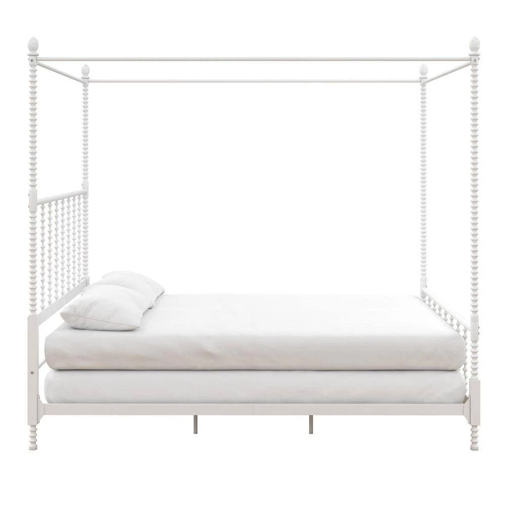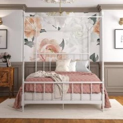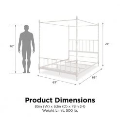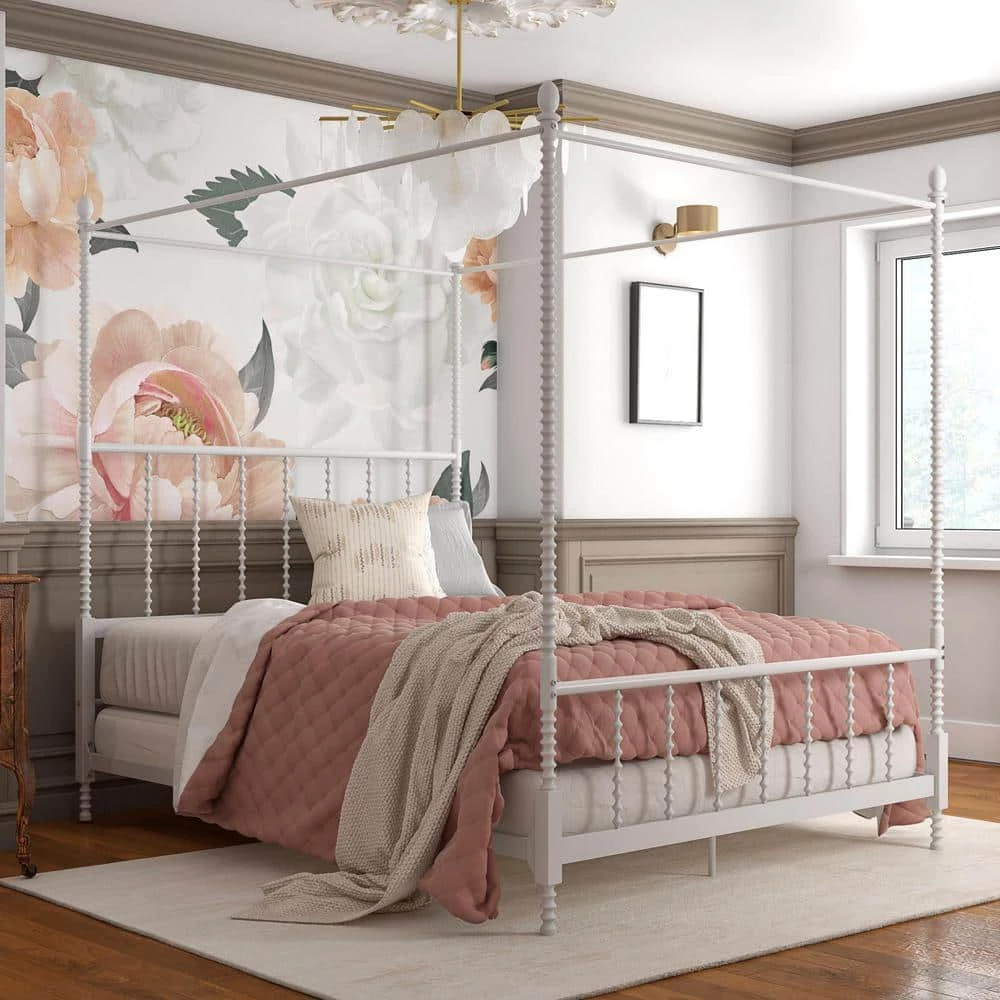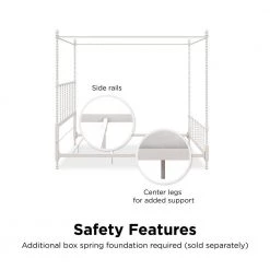 Think outside the box with the DHP Emerson Metal Canopy Bed. Out with the traditional modern bed frame and instead opt with this Parisian-style inspired piece of furniture. The Emerson is beautifully crafted with scrollwork detailing on the canopy beds four posts, headboard and footboard to give it the delicate Jenny Lind style. It is construction with an all-metal frame that includes side rails, additional center legs and secured metal slats, giving you all the stability and durability you require from your favorite bed. No additional box spring or foundation is required. The DHP Emerson Metal Canopy Bed is the perfect centerpiece to bring personality and character to your bedroom. Offered in multiple size and color options.