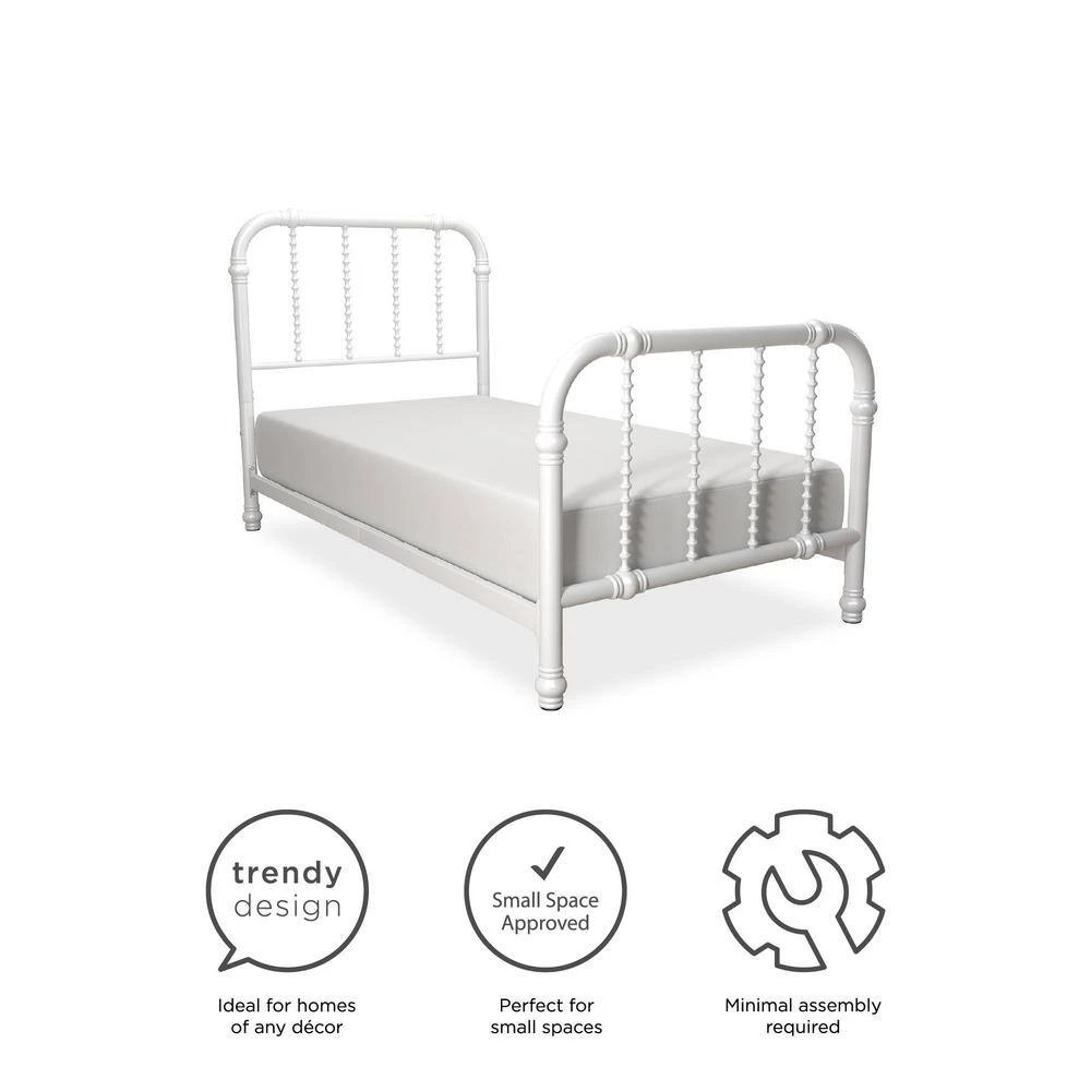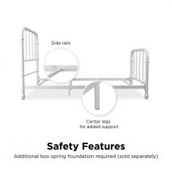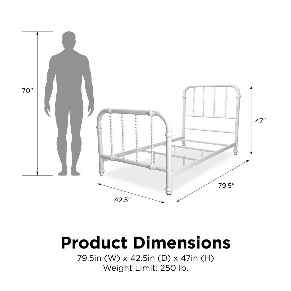 Design an eye catching centerpiece of your own bedroom with the Emerson Metal Bed. The Emerson showcases meticulous details with the clean-cut diamond scrollwork and spindles in beautiful white or pink metal finish – emanating a refined elegance look and feel to any bedroom setting. The bed is crafted in sturdy metal frame with a center leg for added support and stability (requires foundation for mattress, sold separately). The Emerson is ideal for studio, child’s bedroom, guest room, and first time apartment.