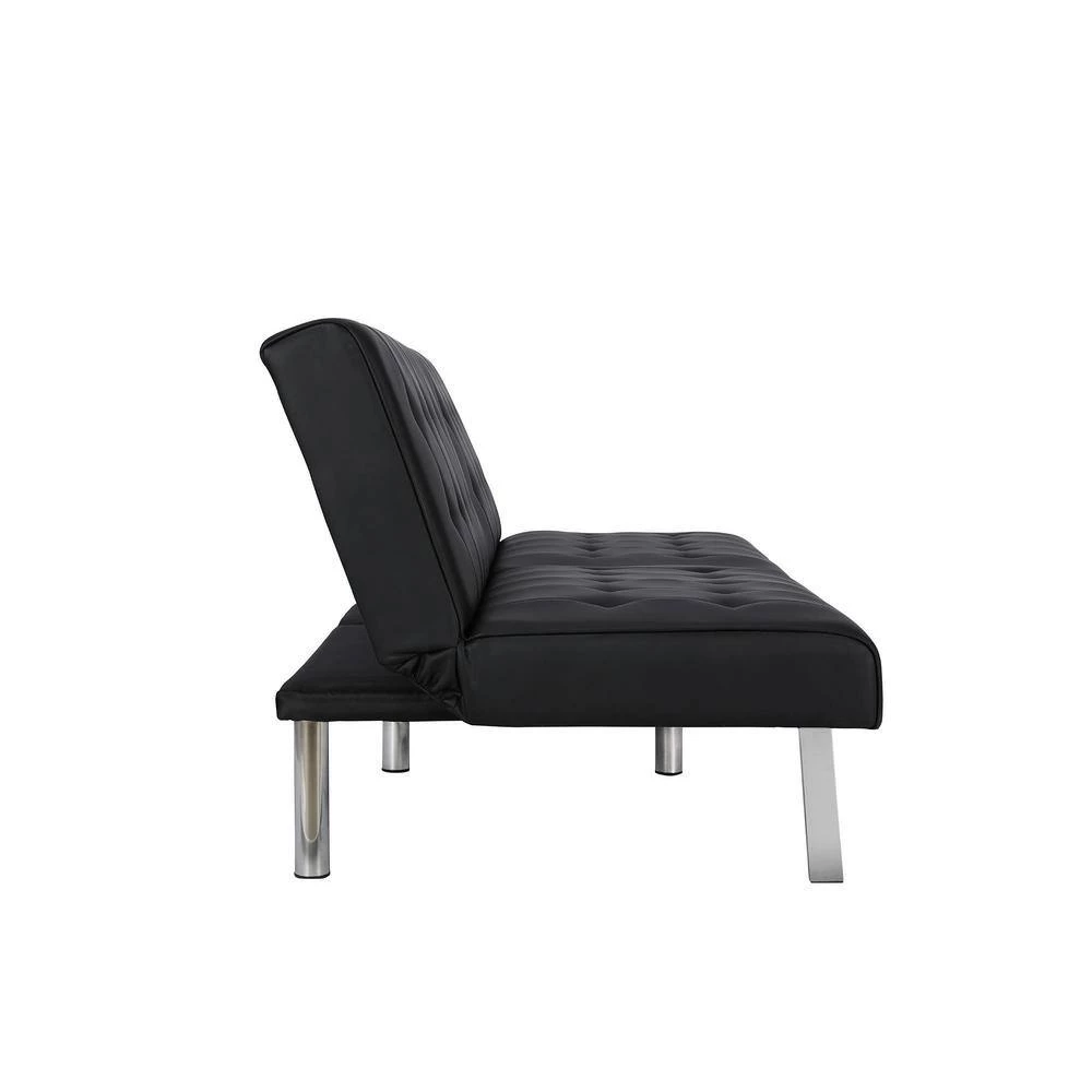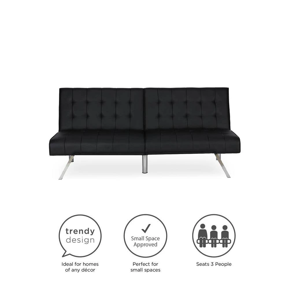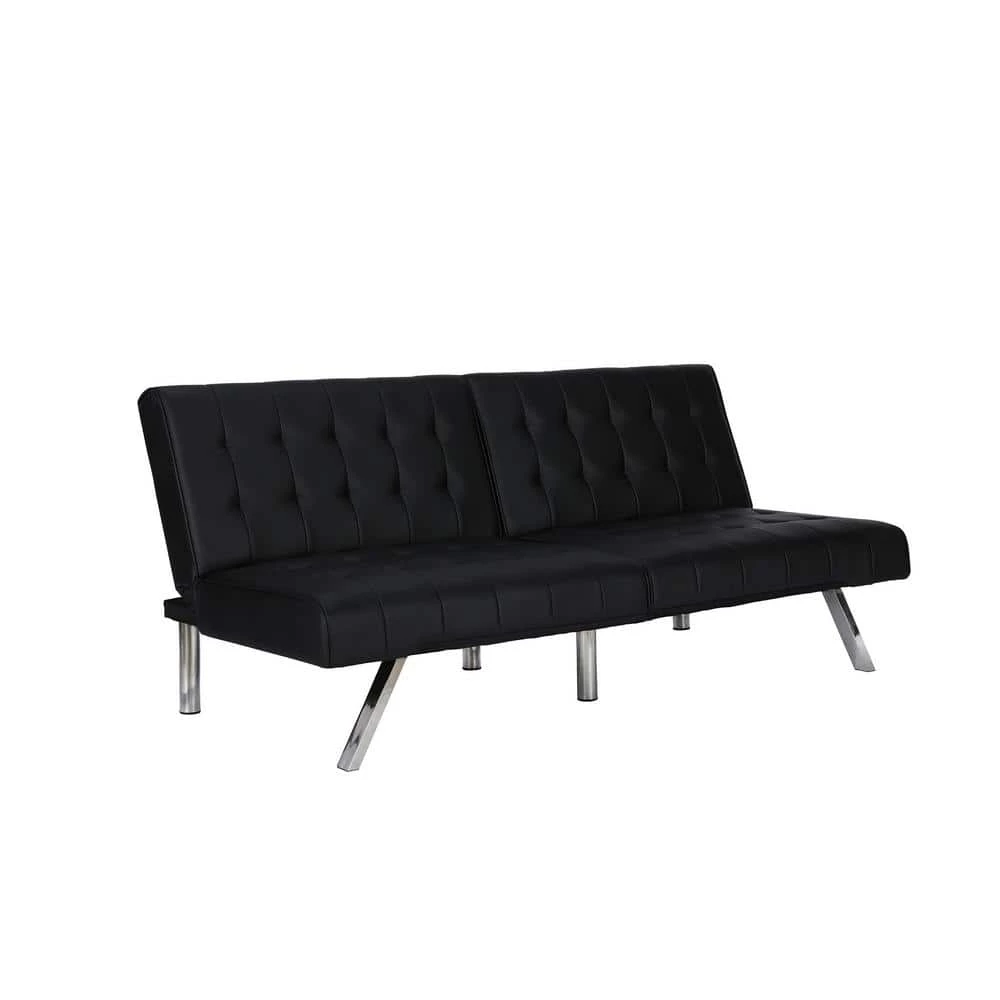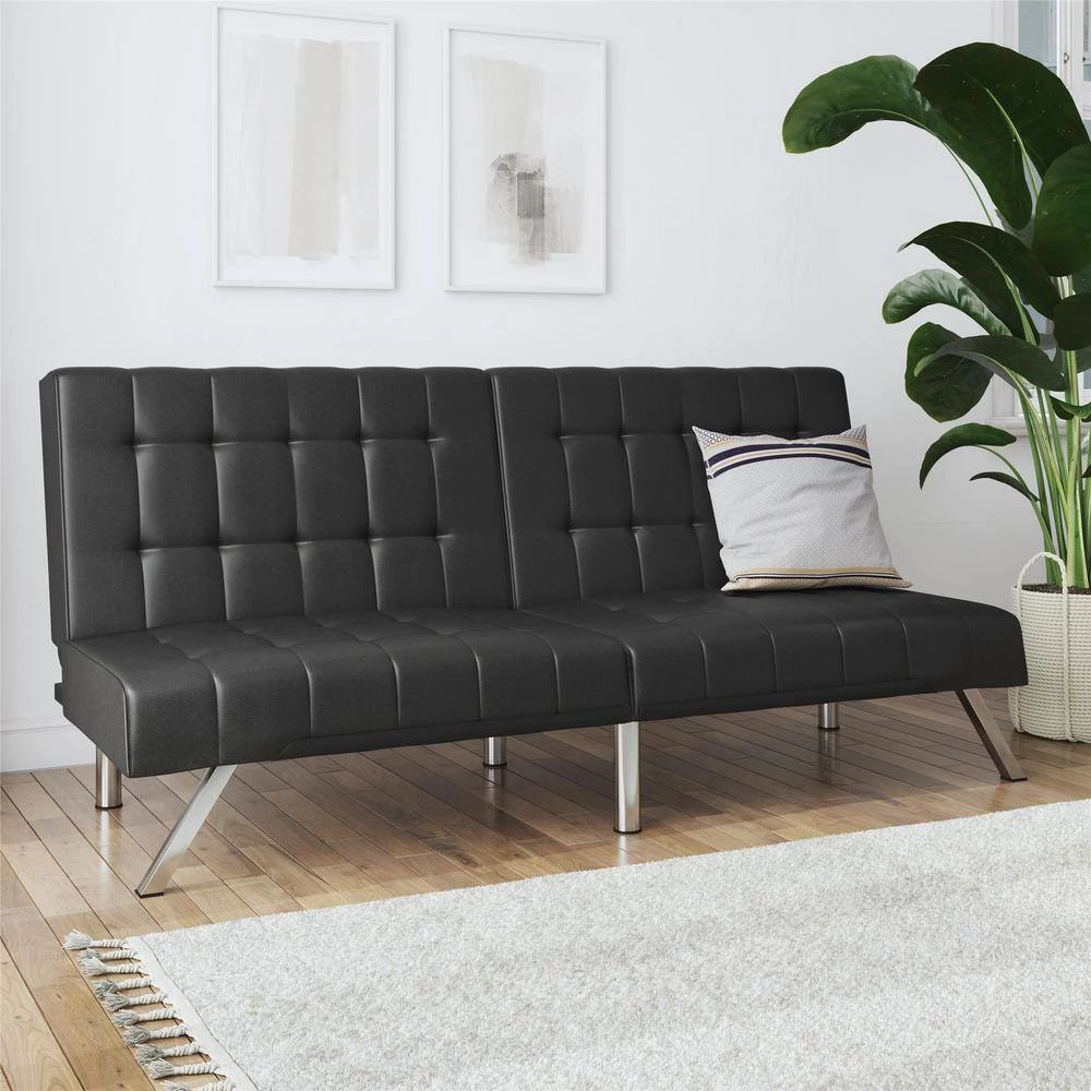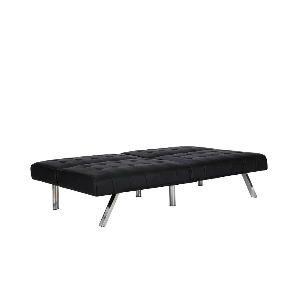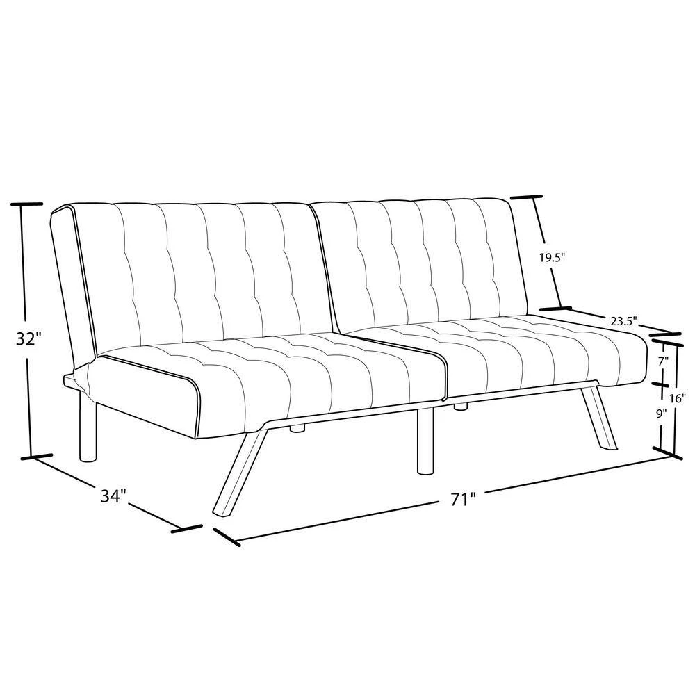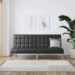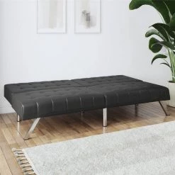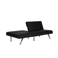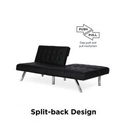 The DHP Eva Tufted futon is a dazzling piece that perfectly blends modern and low-profile. The tufted upholstery gives it a classic touch and the chrome legs add an astonishing burst of shine that’s perfect for any living space! The Eva’s convenient split back lets you easily adjust the futon to your liking-whether that’s sitting up to chat or lounging back to watch a favorite movie; both sides can also be laid down flat for a really comfortable sleeping spot for overnight guests. The small profile lets this futon fit just about anywhere while always making a big statement! For a truly impressive seating space and even more sleeping room, pair your Eva futon with the rest of the collection.