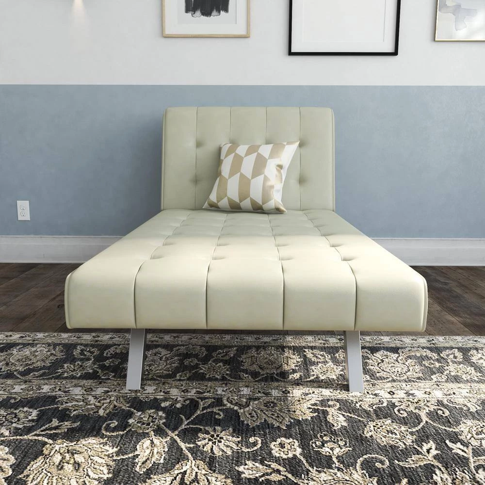 The DHP Eva Chaise Lounger lets you sit up, lean back and lie down in complete comfort. With tufted upholstery that gives it a classic touch, this sleeper chair is the perfect addition to a modern living space and ideal for when guests come to stay. During the day you can lounge and at night, use the convenient split back to change positions to sleeper in seconds. This chaise can be used as an accent chair anywhere and also as a spot to read, rest or simply enjoy a quiet moment. Pair your Eva Chaise Lounger with the rest of the Eva collection for extra seating and sleeping space.