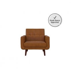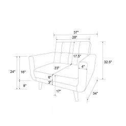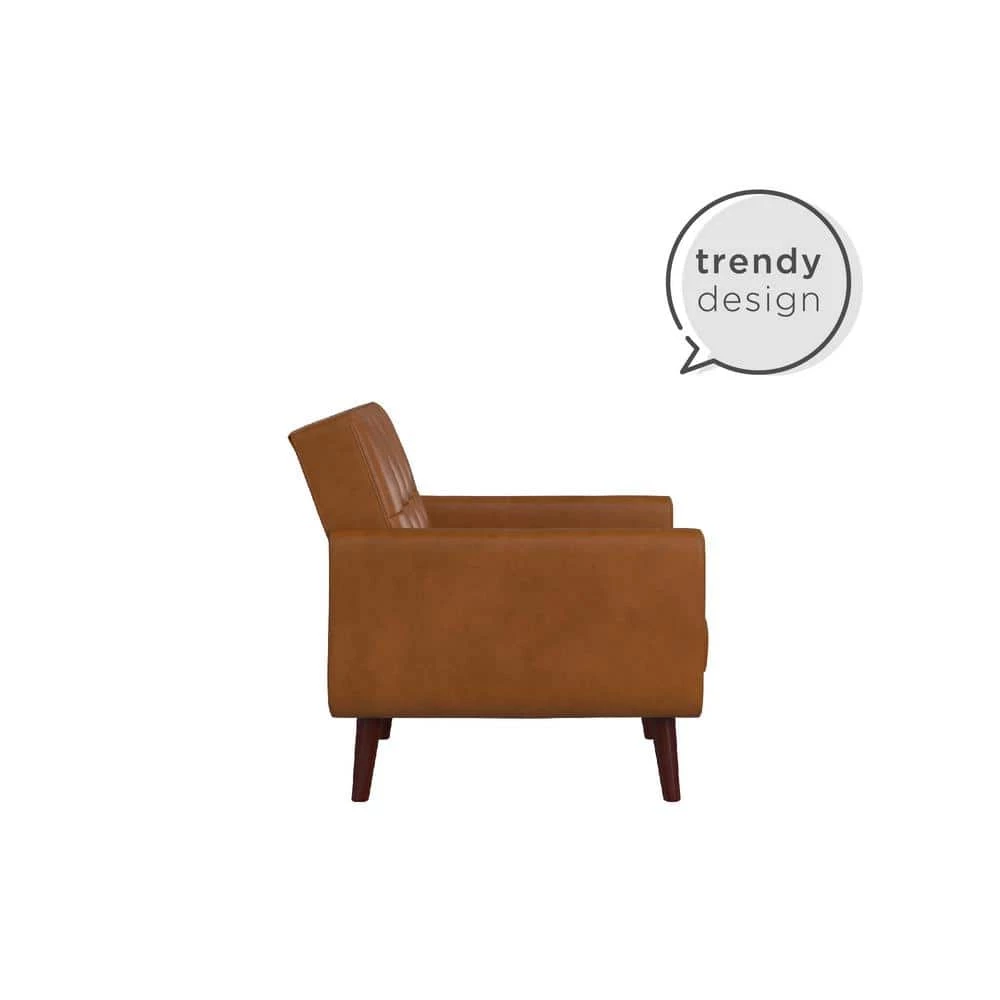 Step up the sophistication factor in your home with the DHP Fay Modern Chair. This dreamy accent chair will quickly draw eyes with its bold and unique appeal. Designed with a touch of mid-century flair, the Fay Modern Chair will help complete the look of any living space. Upholstered in chic faux leather, it features button-tufted detailing on its back. The tapered wooden legs add to its visual appeal and ensure stability and durability. Without compromising comfort for style – the Fay features wide track arms and seating ensuring you could sit, relax or stretch with complete ease. No matter its use, this accent chair is guaranteed to be an attractive addition to your home. Don’t forget to pair it with the matching DHP Fay Modern Futon for a truly unique living-room style. Can support up to 600lb in maximum weight and ships in one box. Little assembly requires make this furniture setup easy and fast. The Fay Modern Chair will not go unnoticed in your home.
