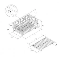 - Sturdy metal frame and 22 slats on the daybed and 20 slats for the trundle deliver additional support and durability