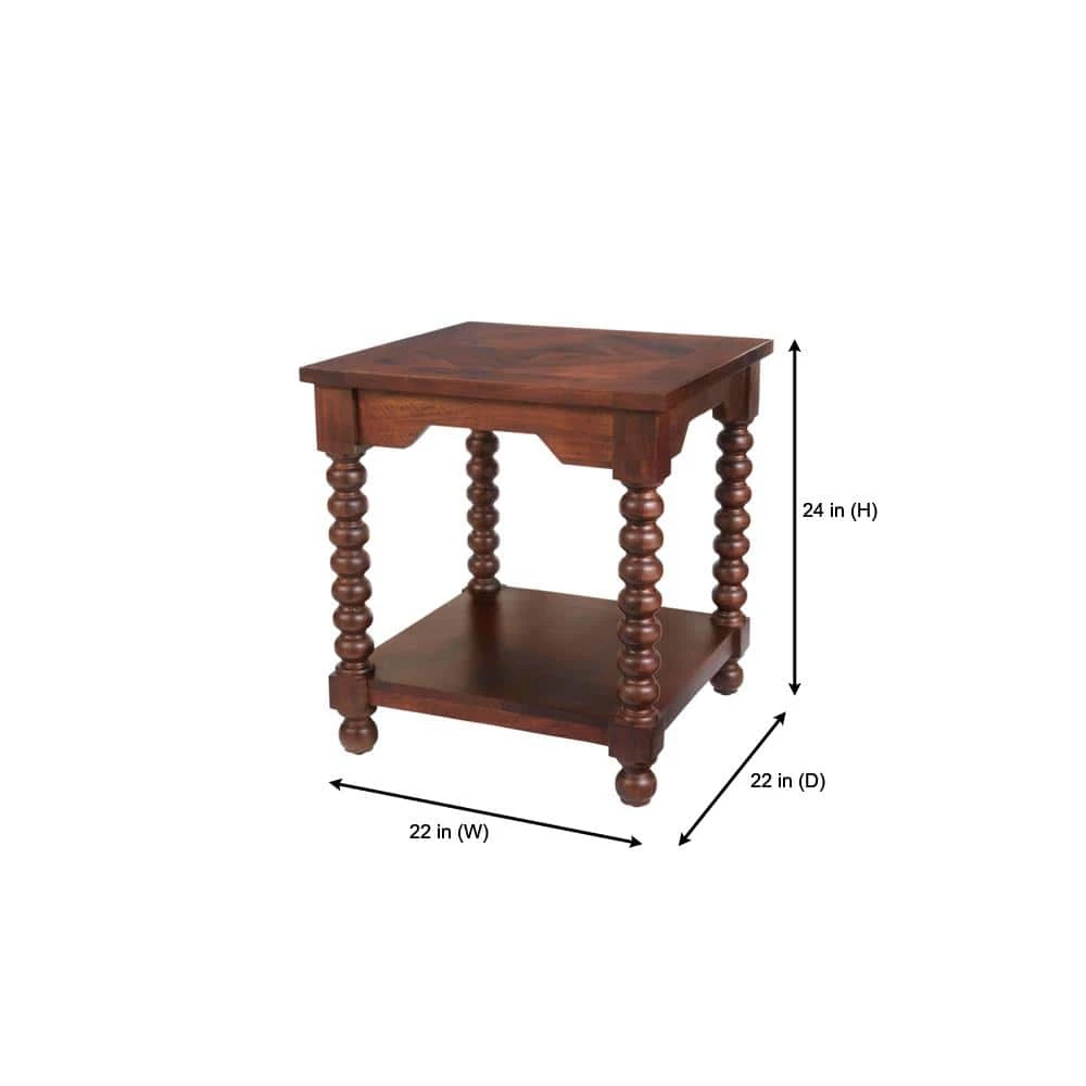 Classic gets a classic makeover with our Home Decorators Collection Glenmore square end table. Designed with eye-catching turned legs, the dramatically scaled table is perfect for a living room, sunroom or any area needing a timeless touch. The square side table’s lower shelf stores a basket of books and other lounge time essentials.