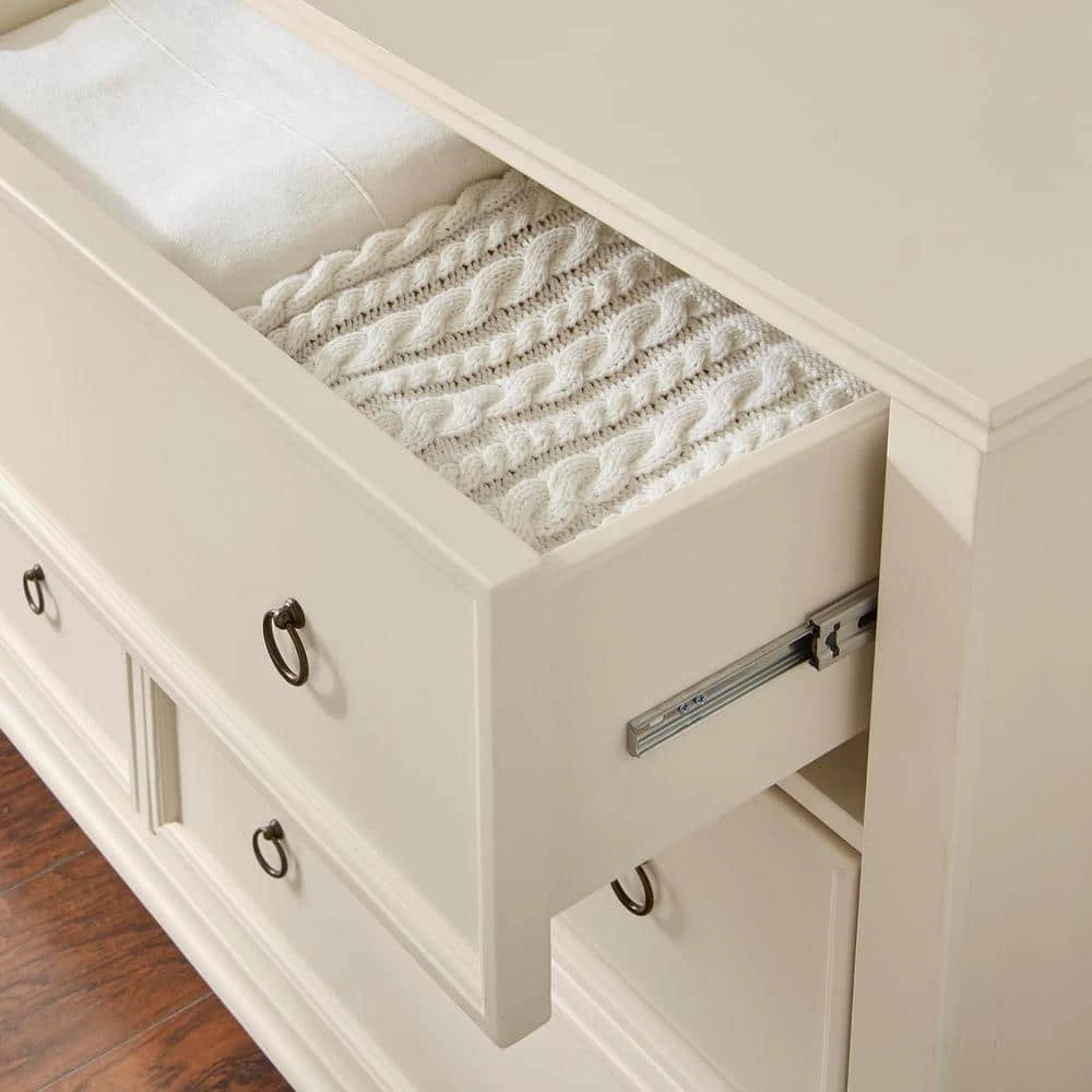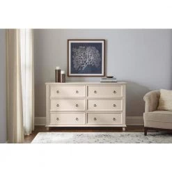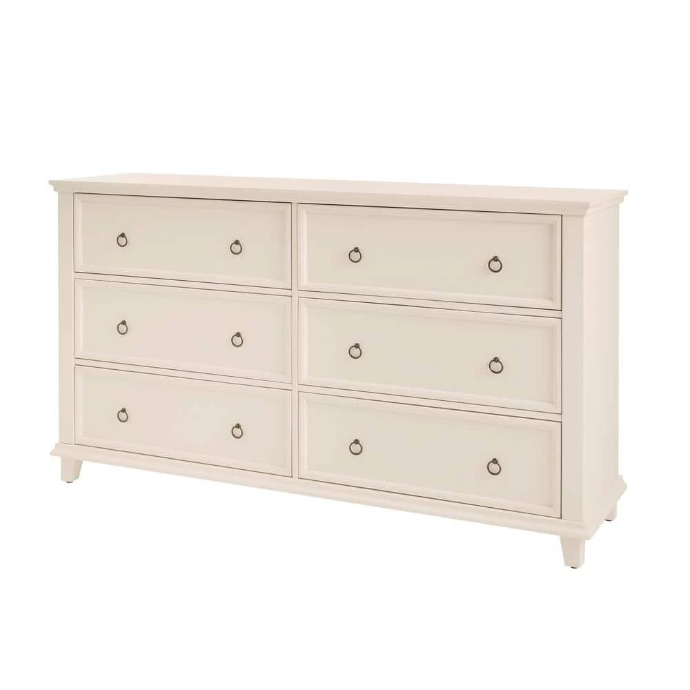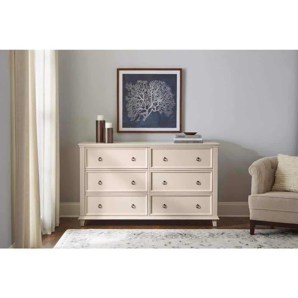Organize your clothing in this Grantley ivory wood lockable six-drawer dresser. Six drawers provide ample amounts of space to store your favorite sweaters, shirts and accessories, and a lockable design supplies added peace of mind. The timeless ivory finish effortlessly complements a broad variety of decor colors and styles to fit into your setup. This durable Grantley ivory wood lockable six-drawer dresser boasts a solid wood construction, offering lasting everyday use.