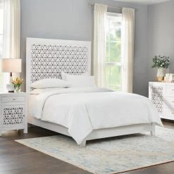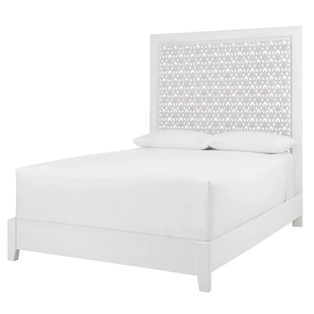 Brighten up your bedroom with this HDC Hallie whitewash wood queen bed. The carved details supply a stunning texture for a beautiful boho appearance, while the whitewash finish easily fits into your decor or bedroom color scheme. A height of 73 in. lets this headboard and bedframe make a bold statement in your master bedroom. With a solid wood construction, this HDC Hallie whitewash wood queen bed cradles your mattress and box spring to complete your sleeping space.