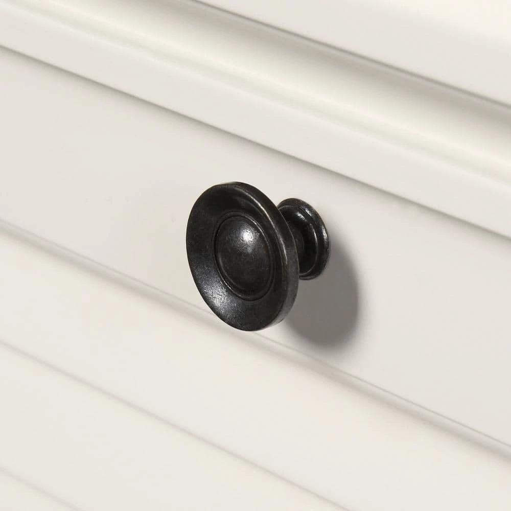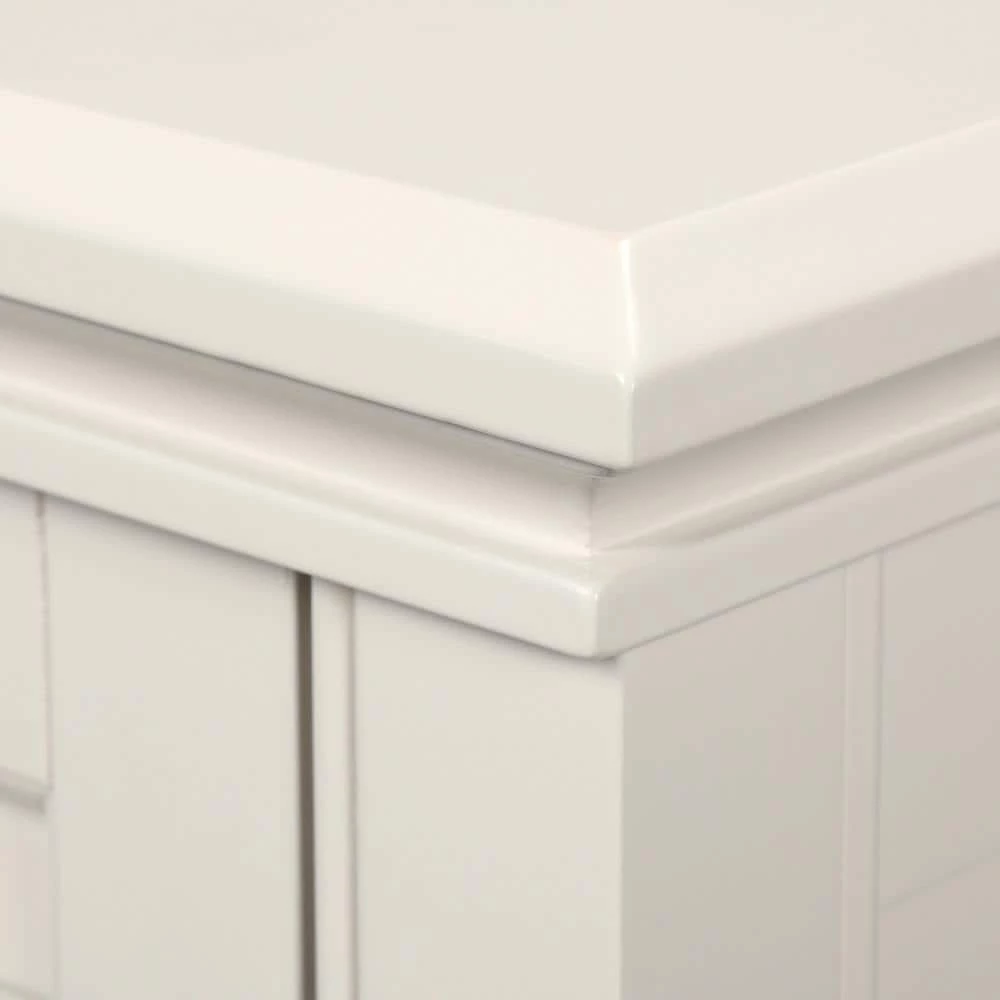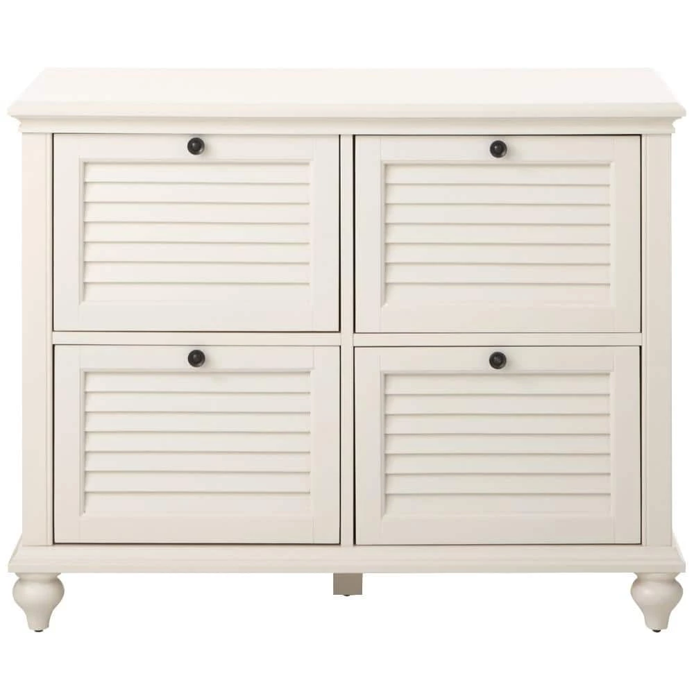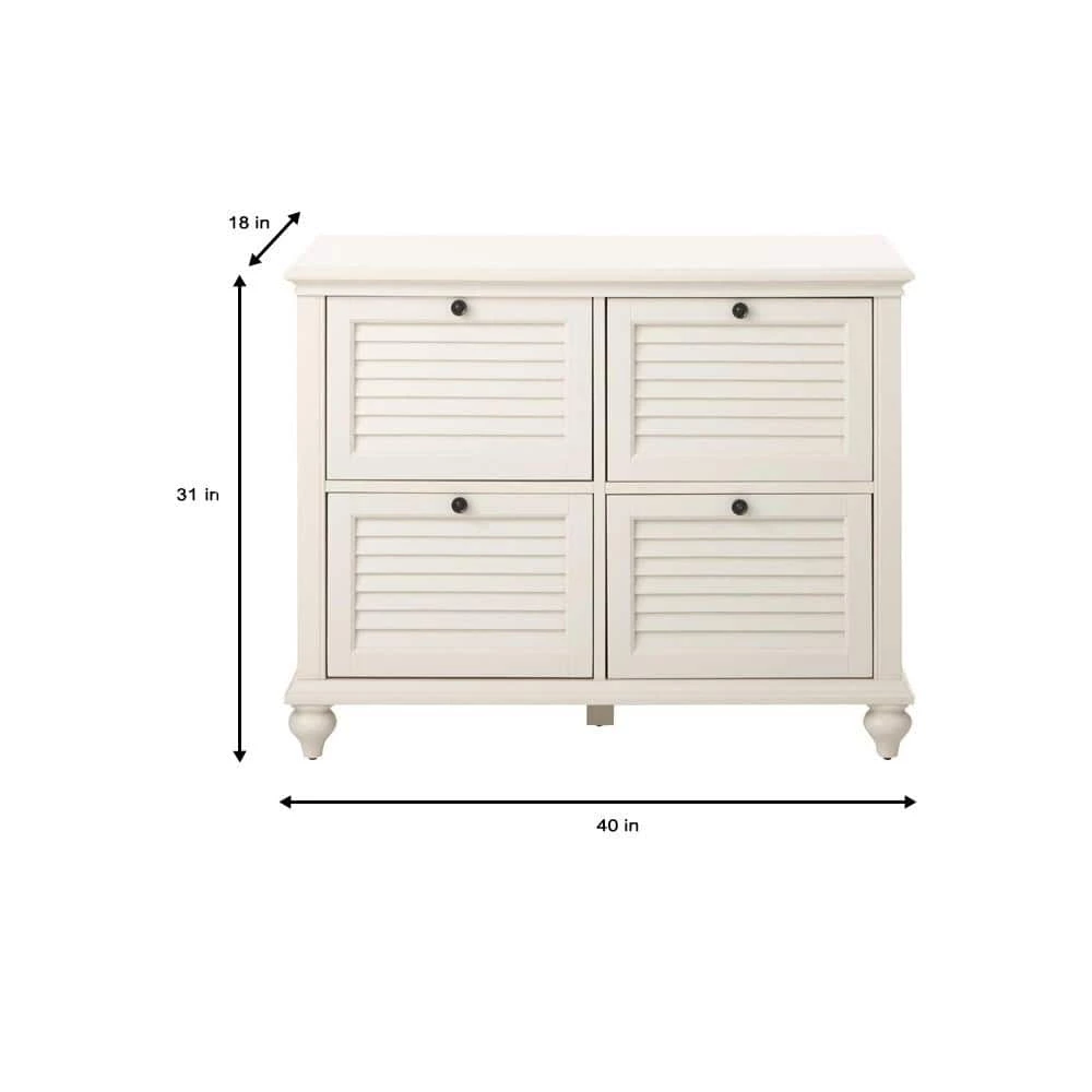 Keep your home or office organized with this Hamilton Four-Drawer File Cabinet. It features a classic design with tulip bun feet, a white finish and louvered details. It has plenty of space for your letter- and legal-sized documents with four file drawers on full-extension ball bearing glides.