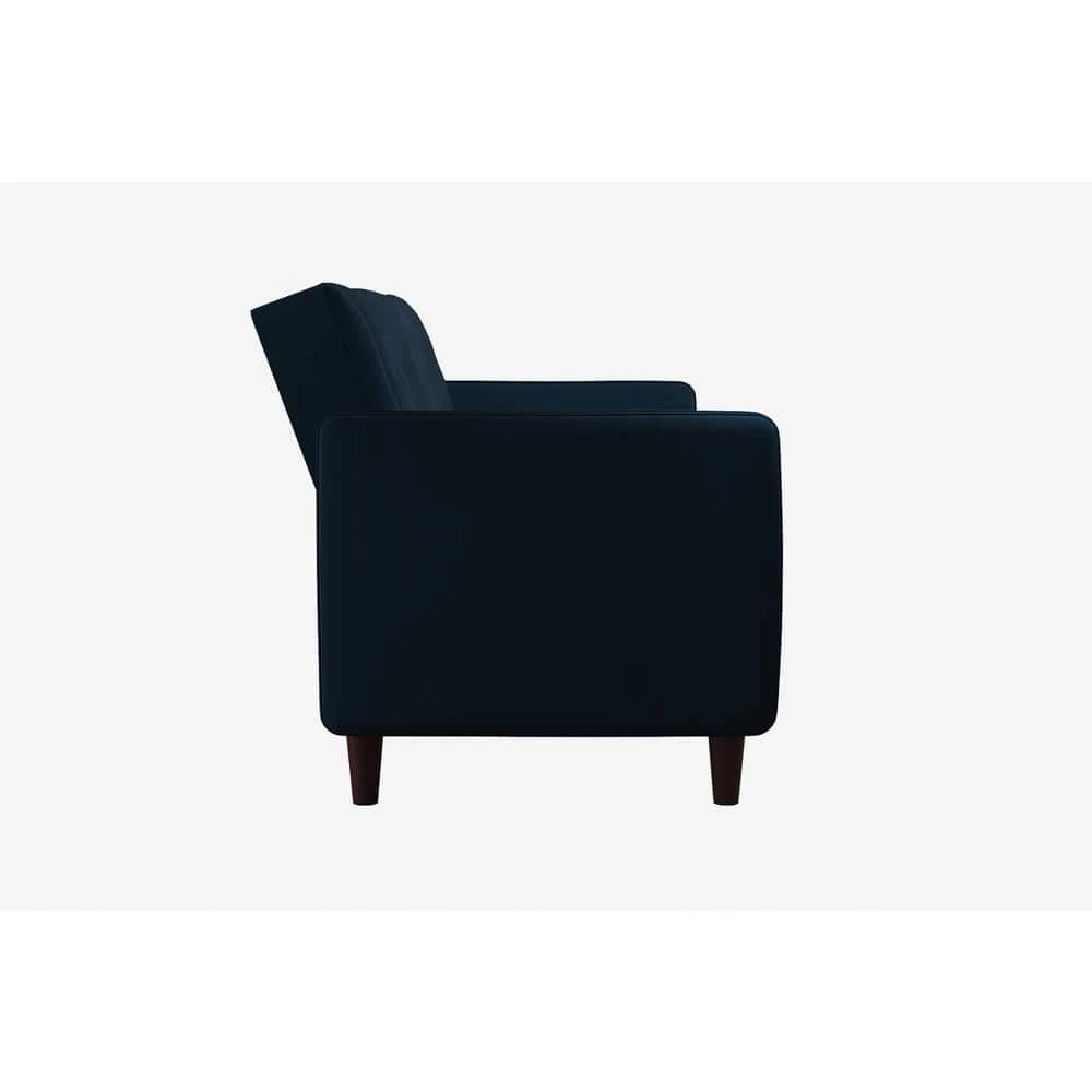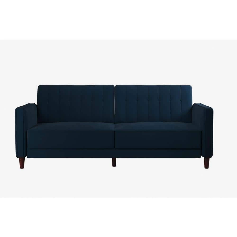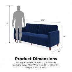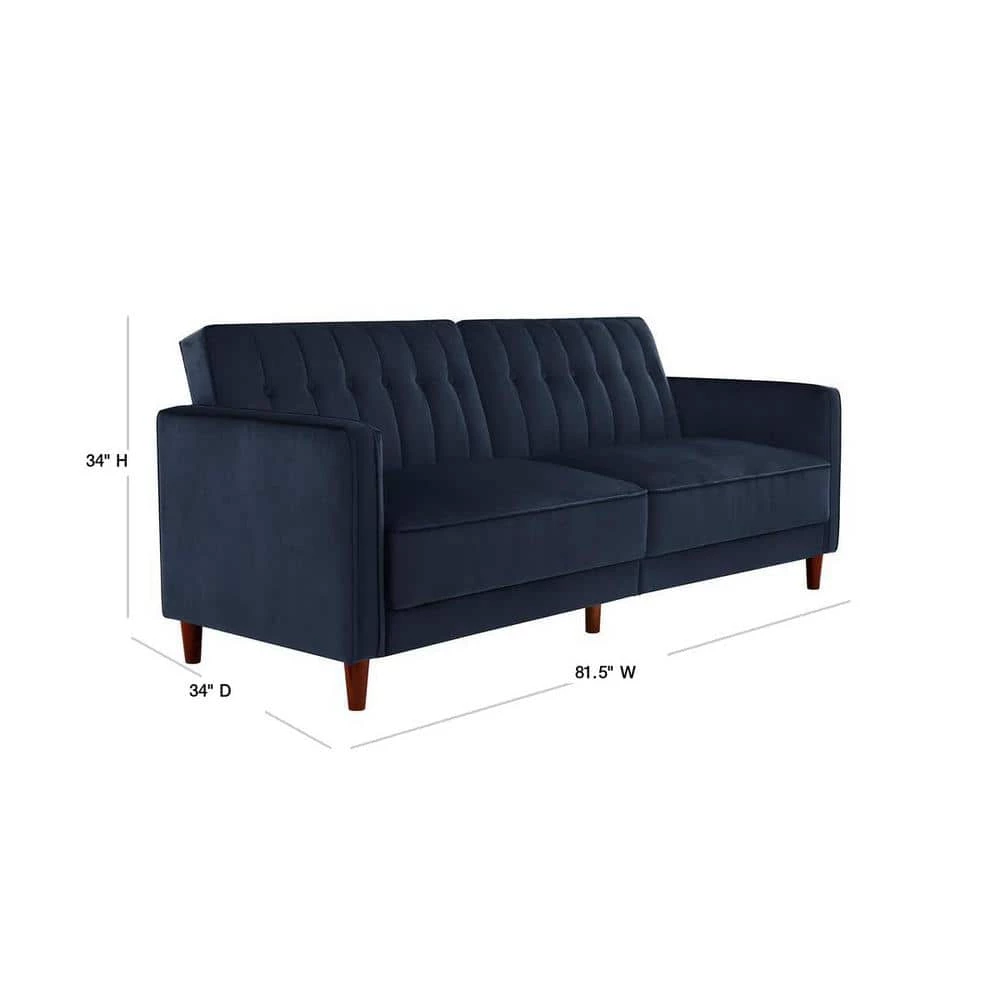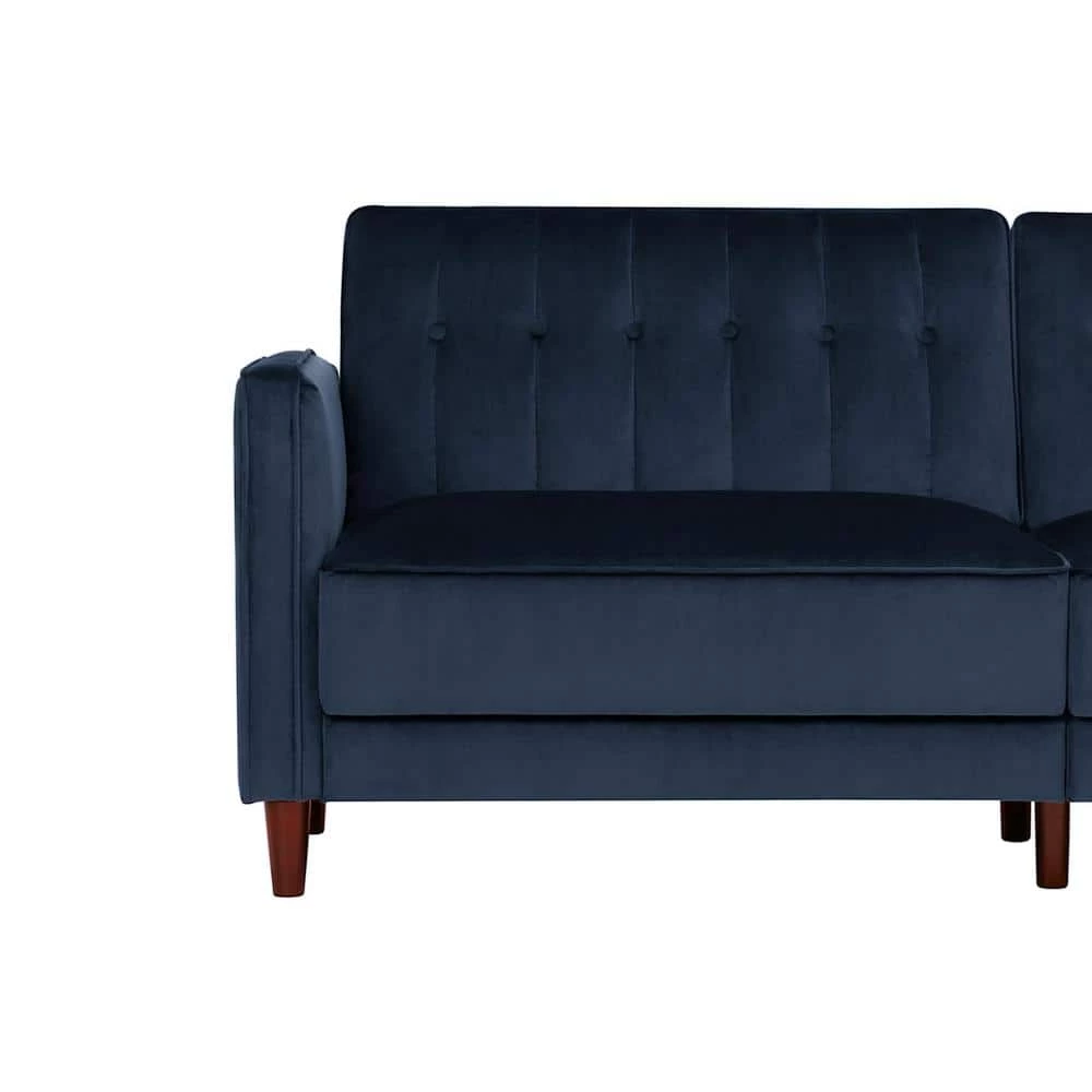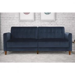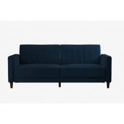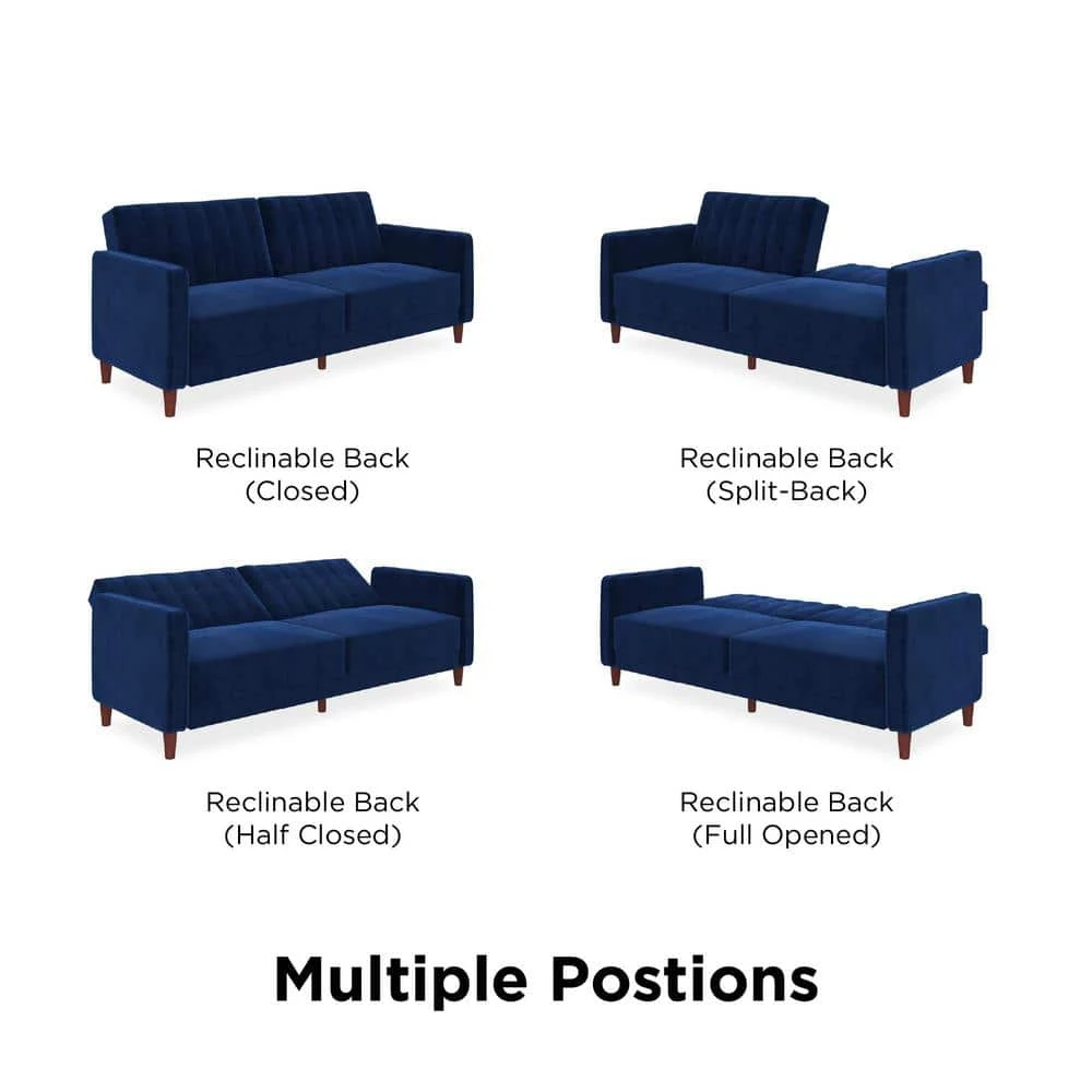 The DHP Iris Tufted Futon is elegant and comfortable with a look that takes you back to the bold and luxurious days of the 1950s. With a vintage design in soft velvet upholstery and tapered wooden legs, it has a split-back that allows changing to multiple positions: sitting, lounging and sleeping. The padded armrests provide extra seating comfort and the padding under the feet protect your floors from scuffs and scratches. This multi-functional piece is ideal for small living spaces: you can now sit up with your friends, lounge back and also offer overnight guests a comfortable spot to spend the night.